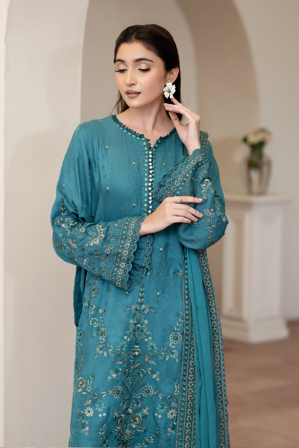 Description: Embroidered Viscose Stapple Jacquard With Embroidered Chiffon Dupatta