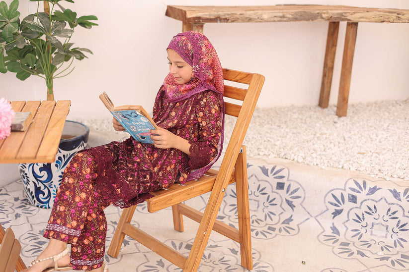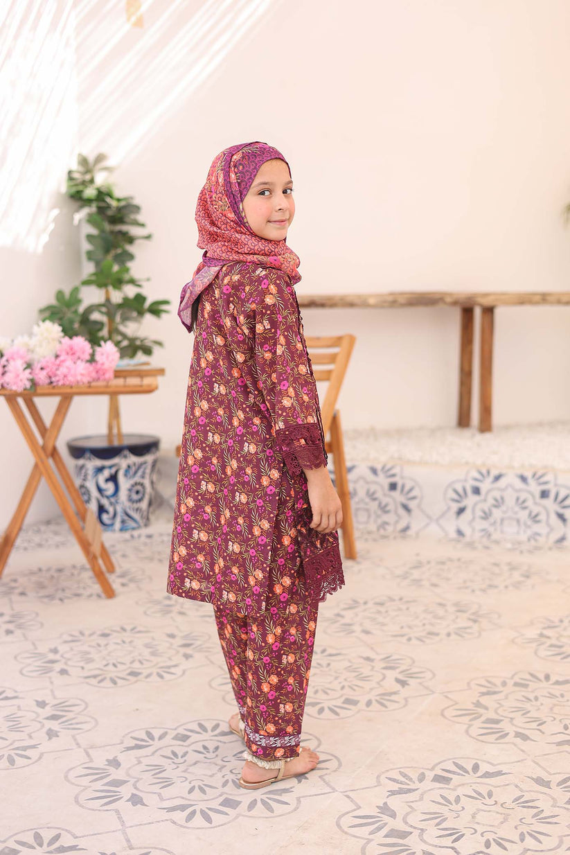 ZOYA AHMAD 3 PC - MAROON - EMBROIDERED - LACE & CUTWORK KIDS WEAR-FS-D04