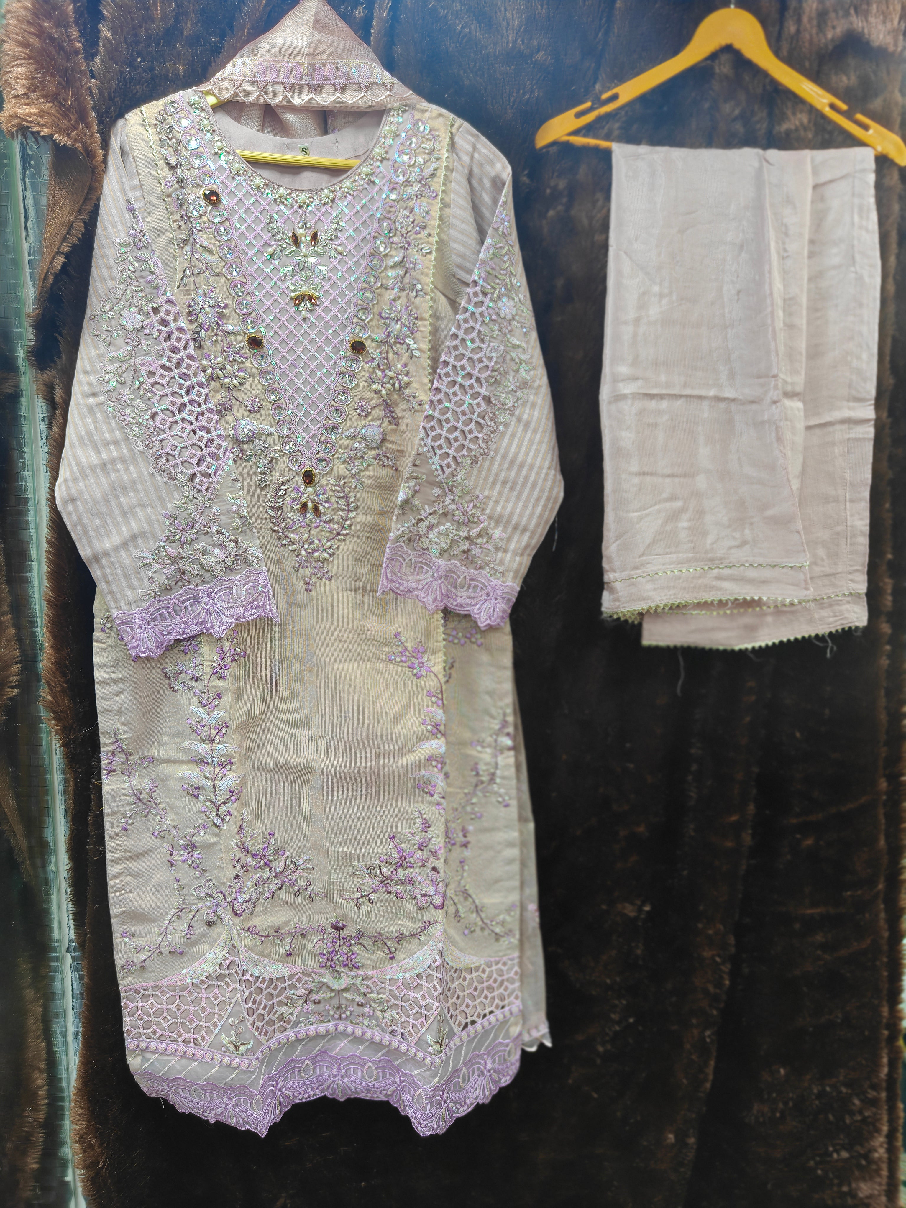 HEAVY EMBROIDERED COTTON NET /ORGANZA FRONT