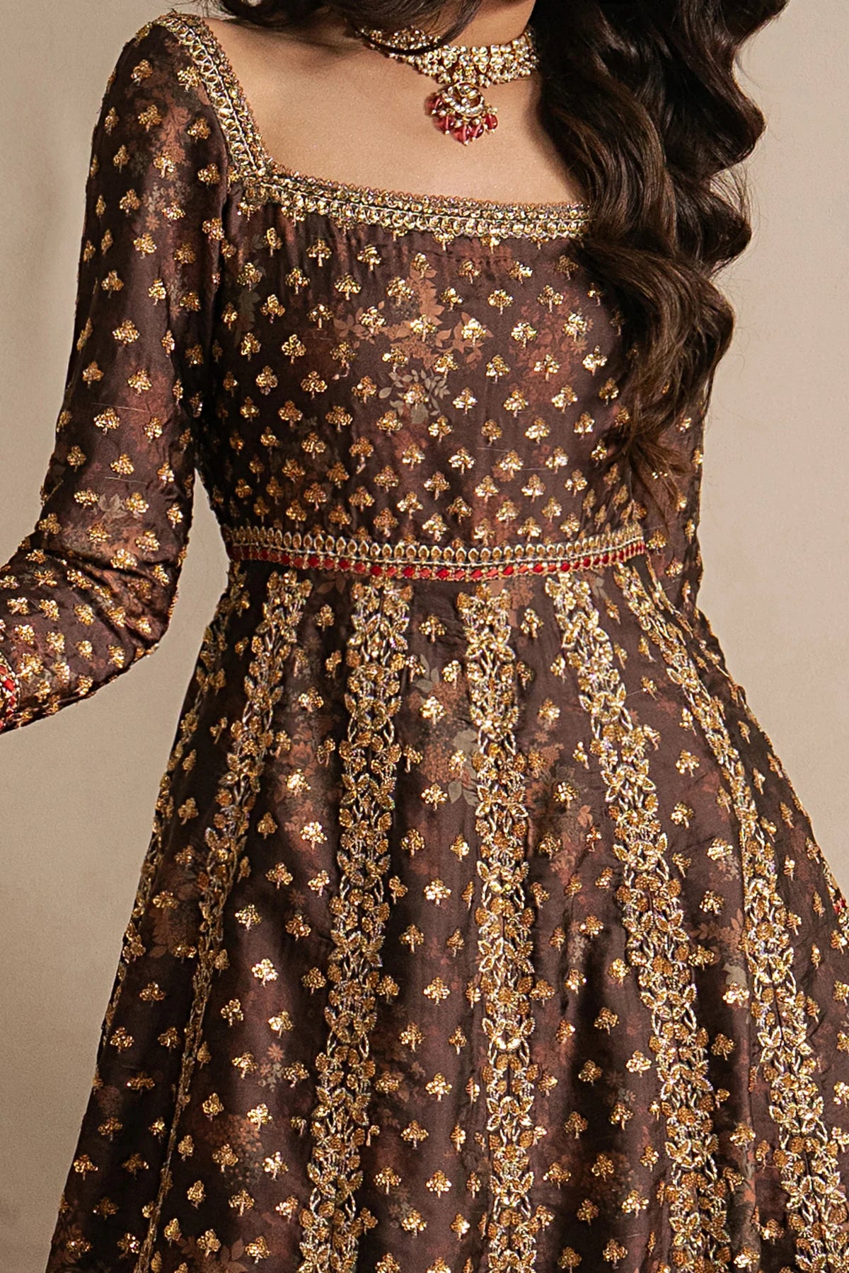 Dark Brown Raw Silk Embroidered Panels Border B 3.75 M