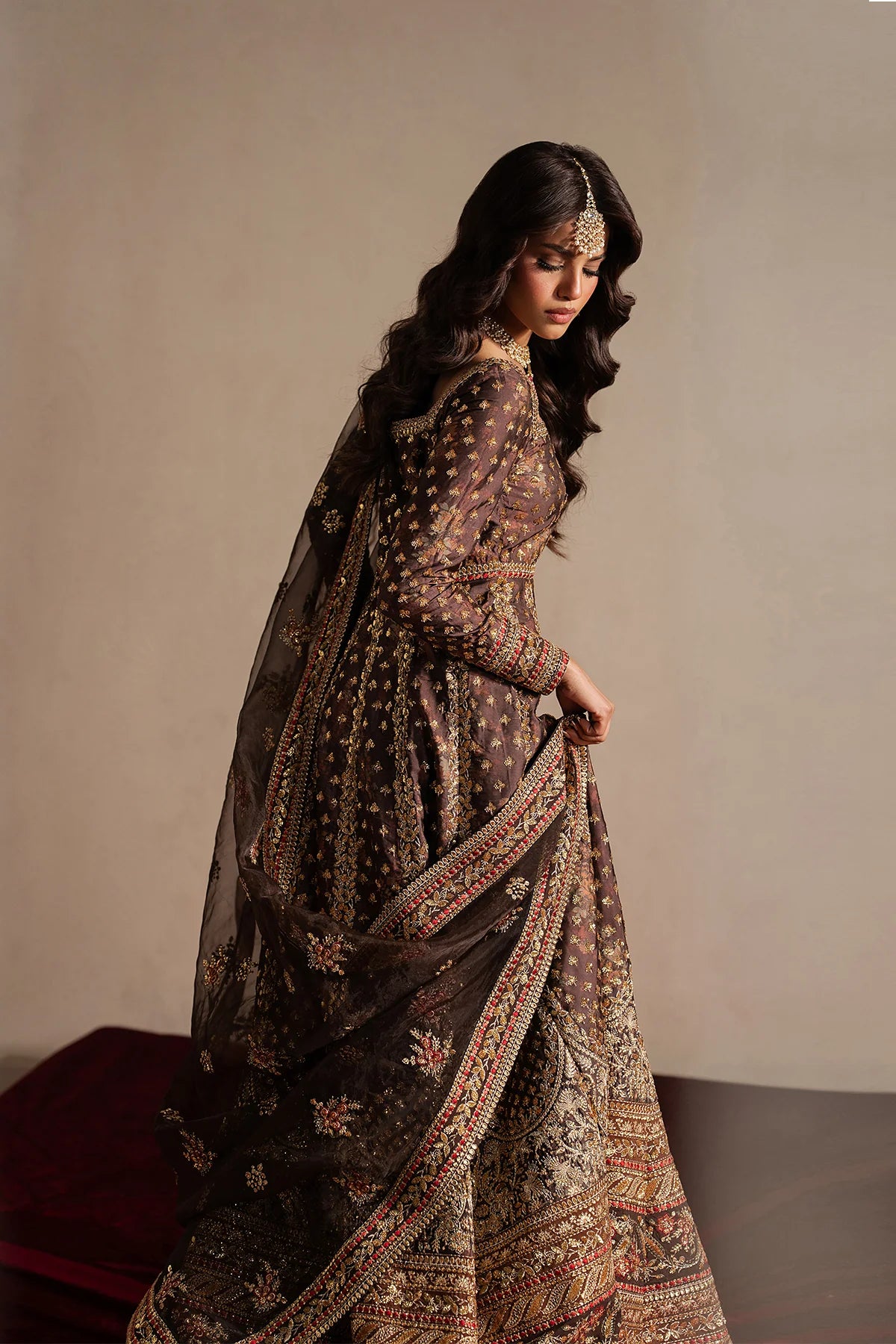 Dark Brown Organza Embroidered Dupatta 2.60 M