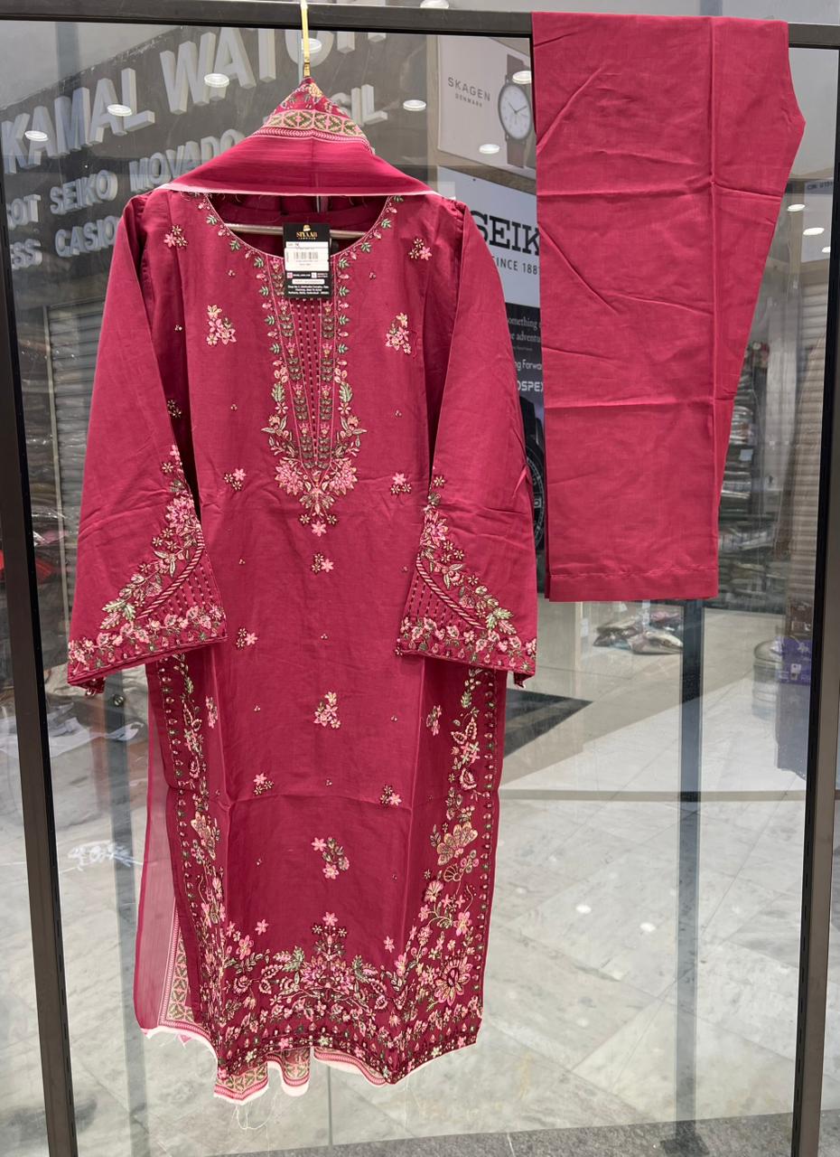 Dyed / embroidered lawn trouser.