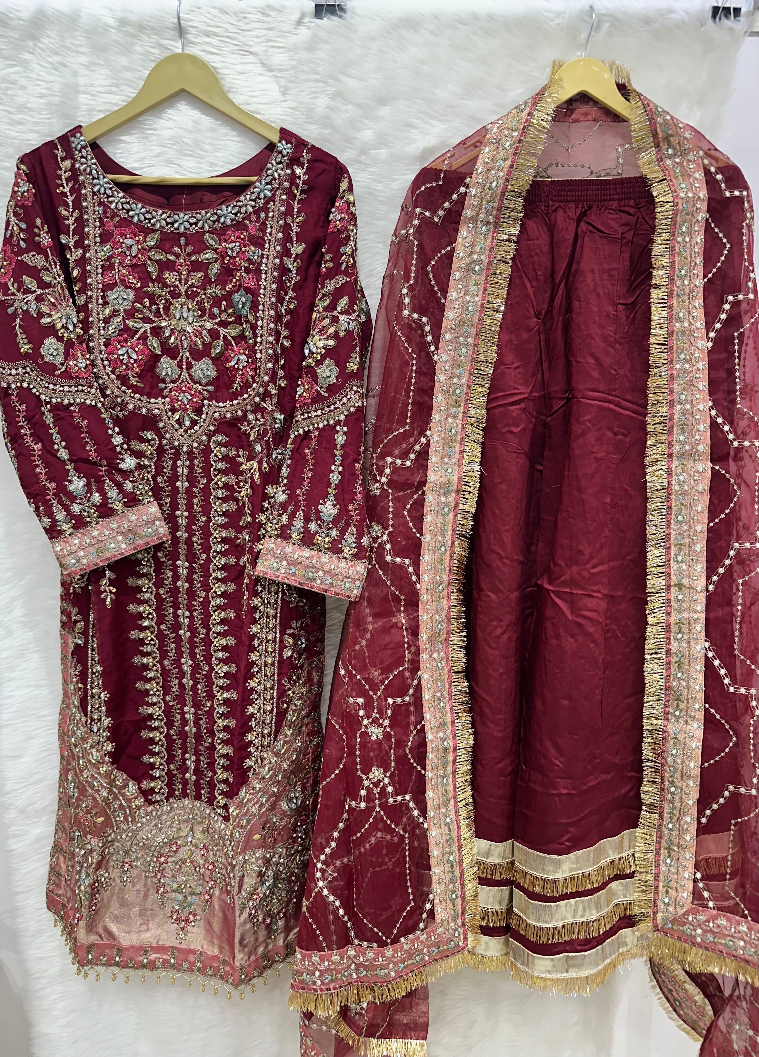 HEAVILY EMBROIDERED CHIFFON KAMEEZ