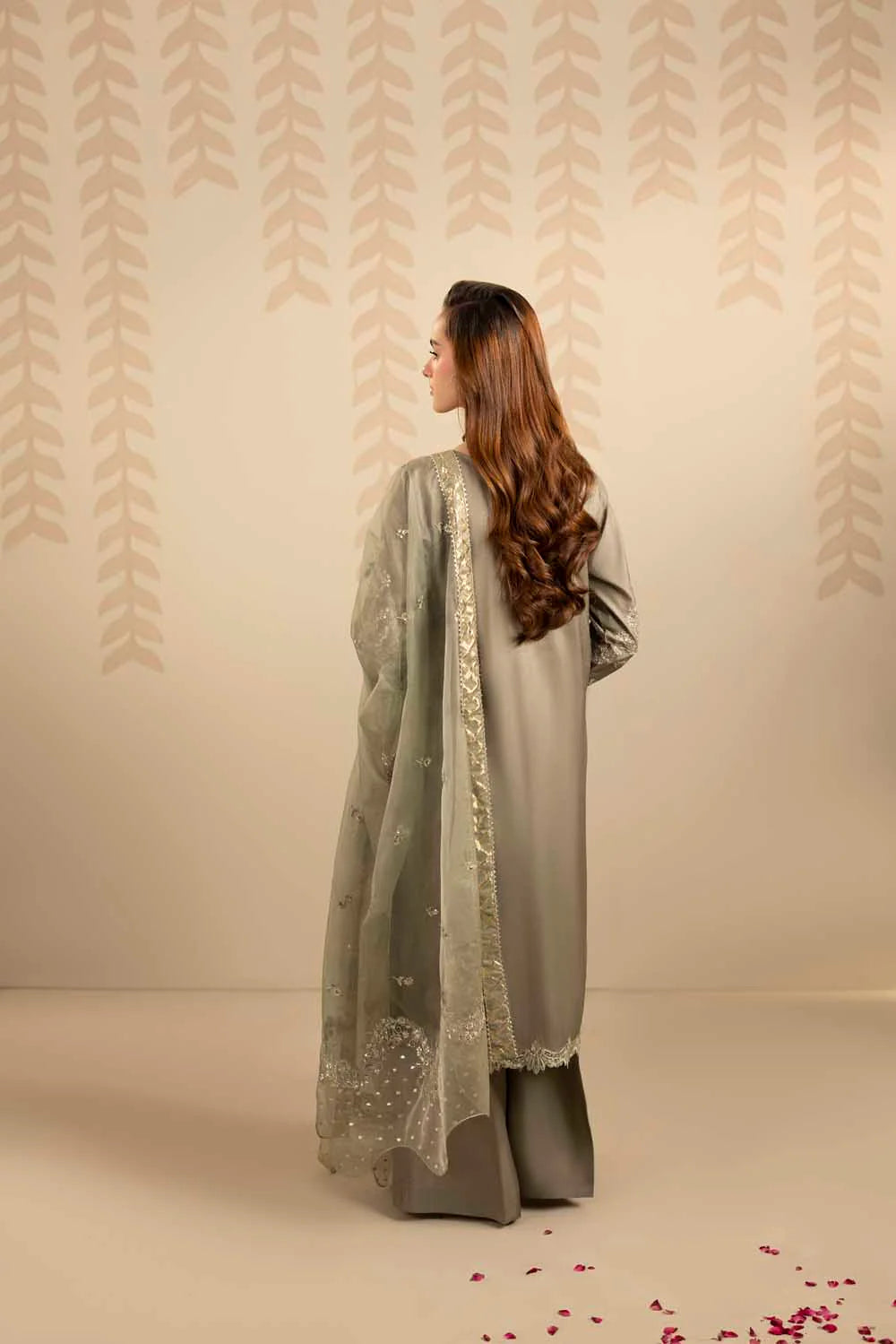 Dupatta: Organza embroidered dupatta, enhanced with zari fabric and an intricately embroidered pallu.
