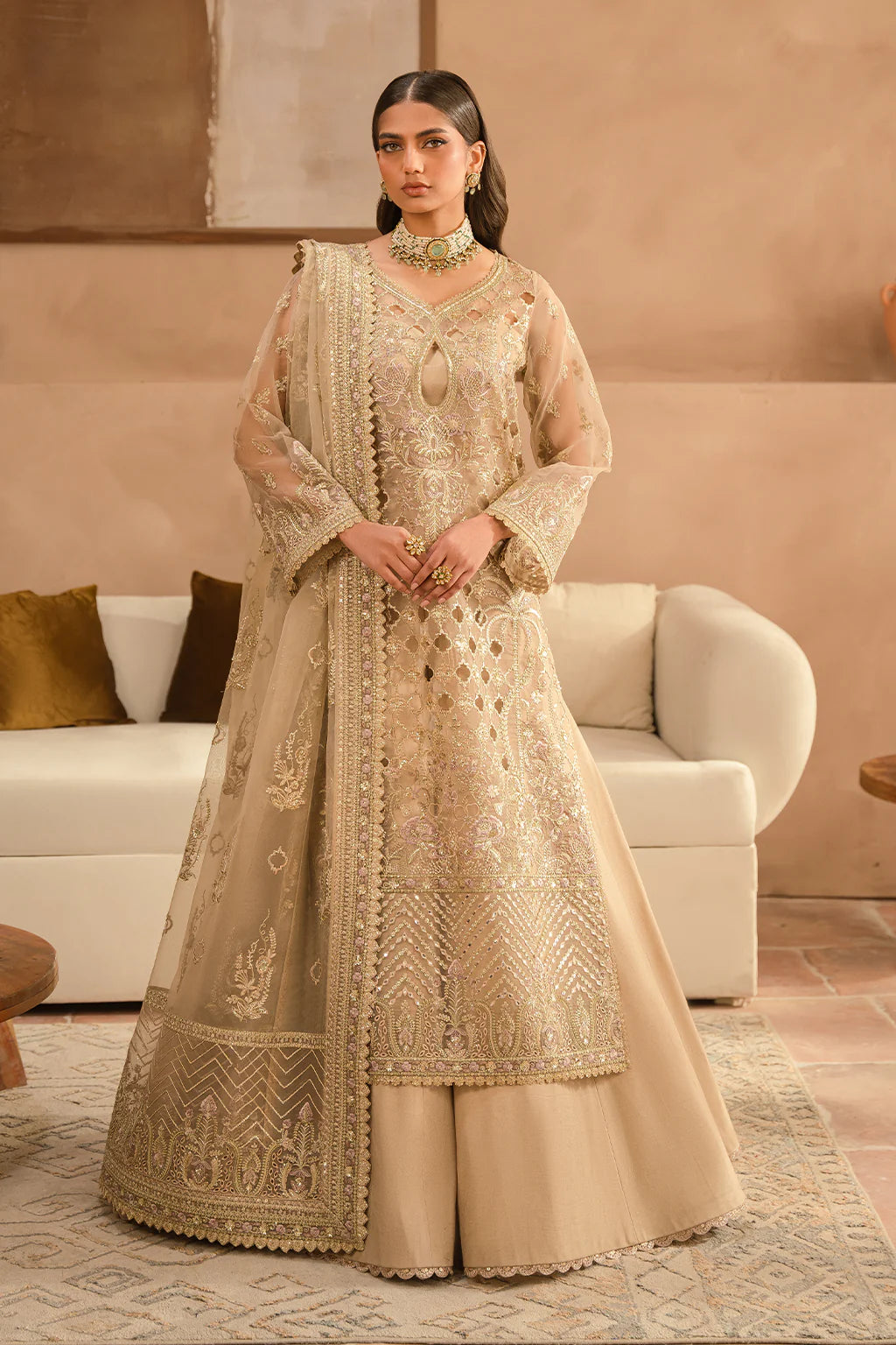 ORGANZA EMBROIDERED DUPATTA 4 SIDE BORDER (9 M)