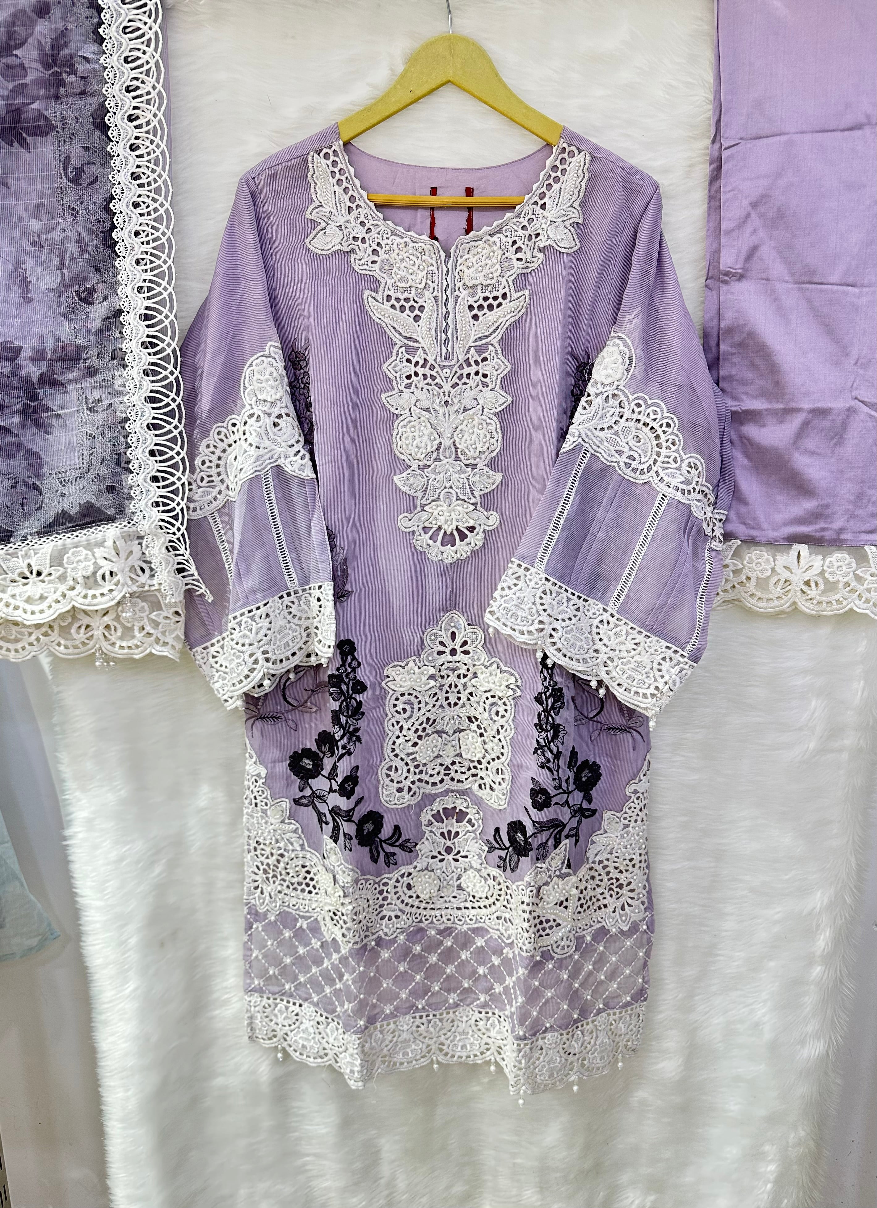 HEAVILY EMBROIDERED COTTON NET KAMEEZ