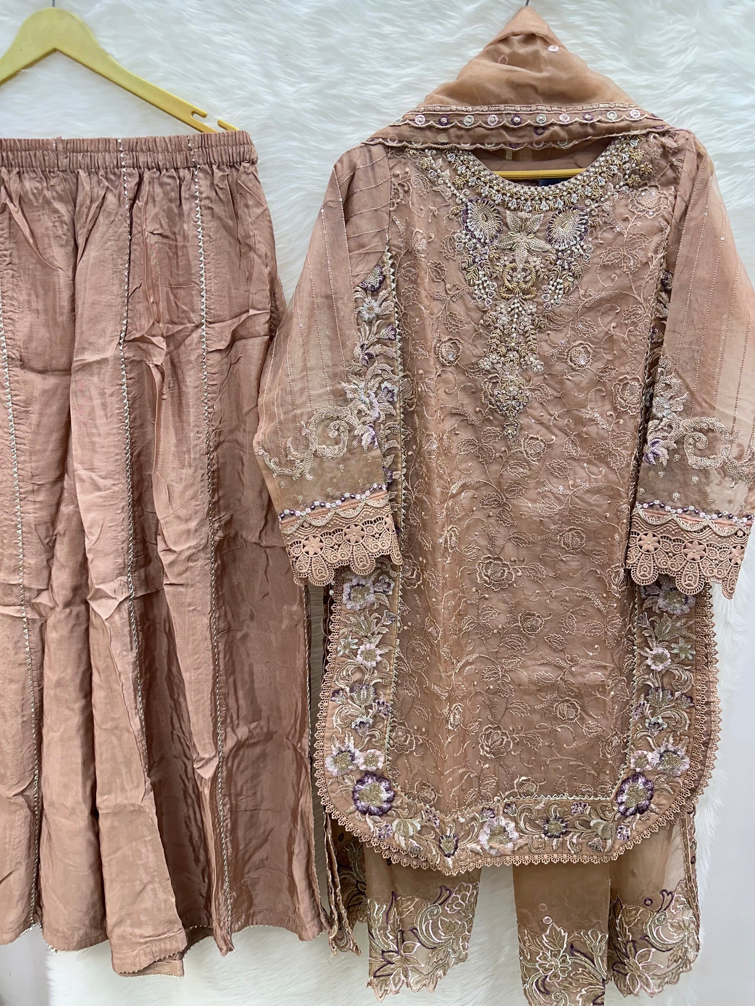- Organza embroiderd & hand Embelished shirt which is finished with composed Daman Nd hem border.