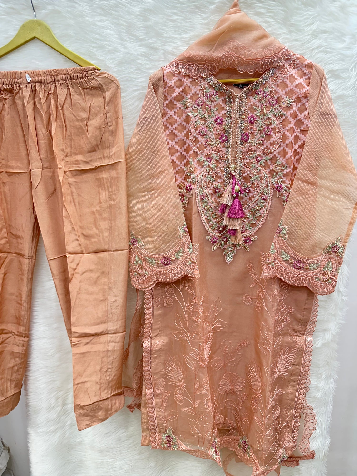 - Dress paired with taper pant Nd Embroidered organza dupata.
