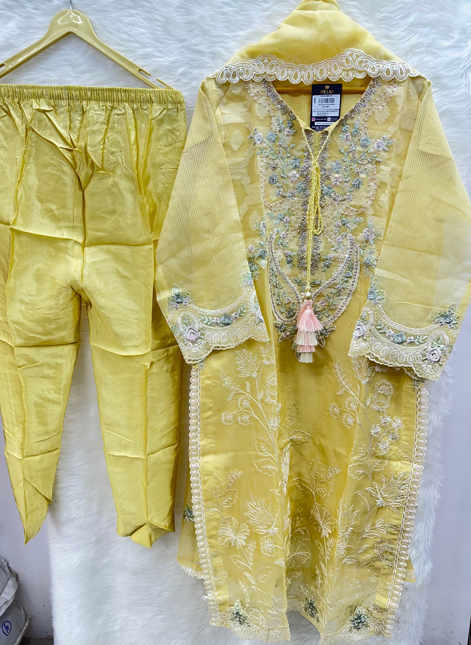 - Dress paired with taper pant Nd Embroidered organza dupata.