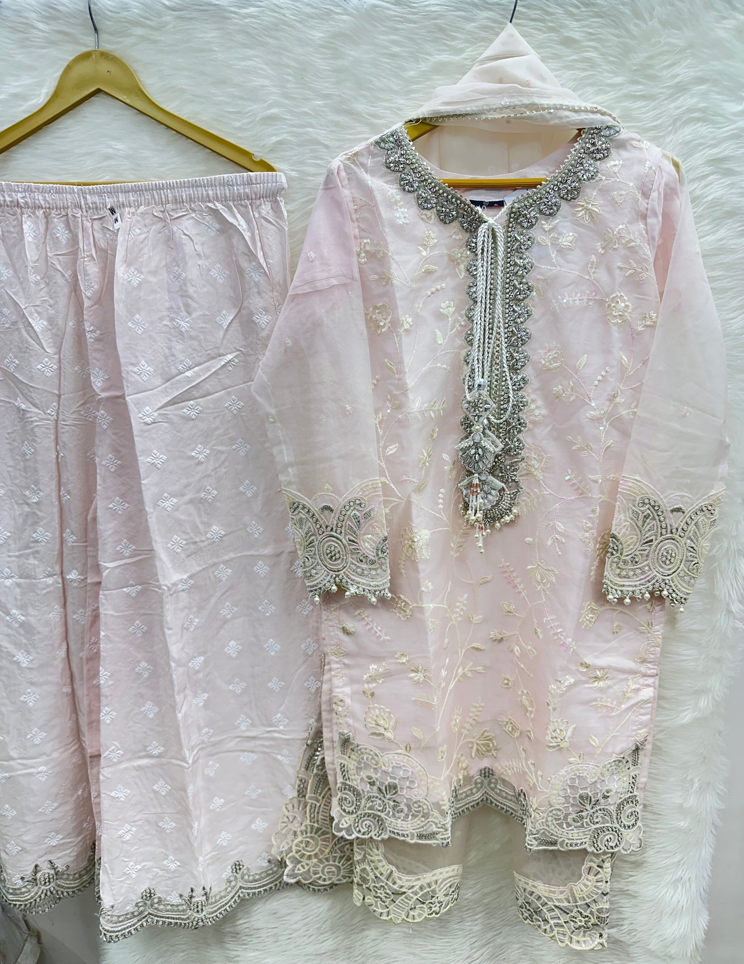 - Trouser finished with embroidered border Nd Embroidered organza dupata which finished with embroidered pallu