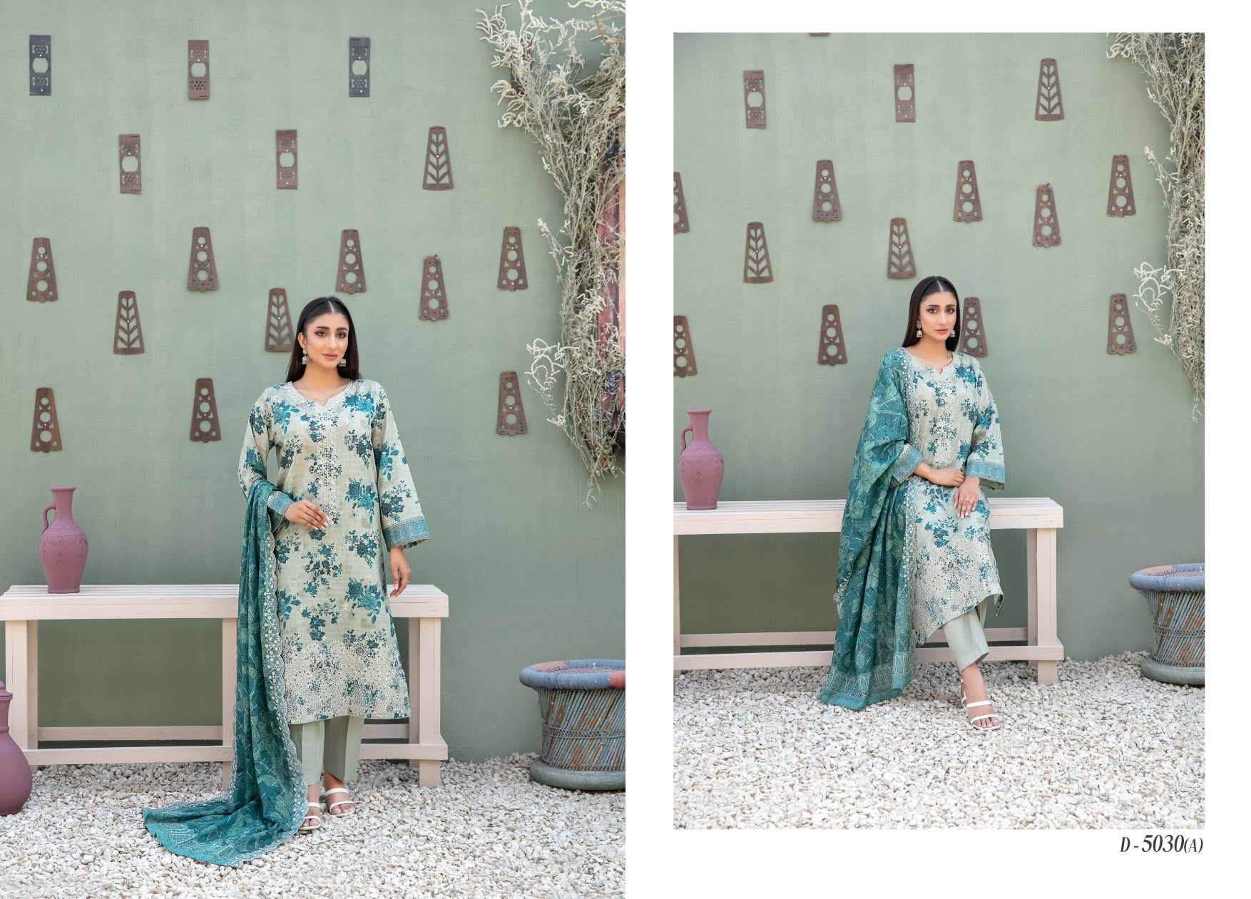 Cutwork Embroidered Digital Printed Lawn Dupatta & Un-Stitched Plain Cotton Shalwar Fabric