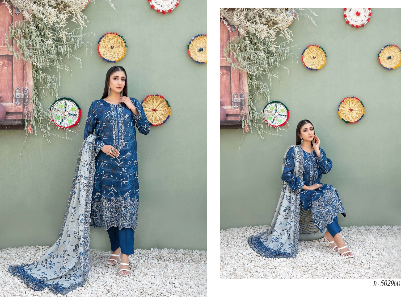 Cutwork Embroidered Digital Printed Lawn Dupatta & Un-Stitched Plain Cotton Shalwar Fabric
