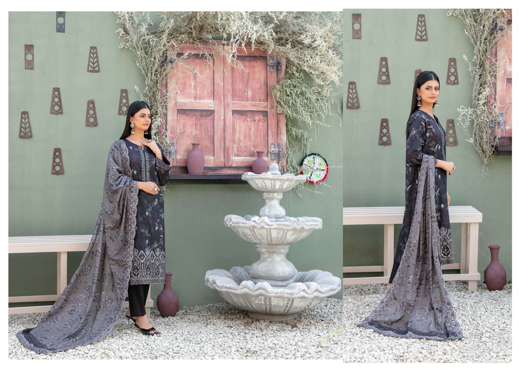 Cutwork Embroidered Digital Printed Lawn Dupatta & Un-Stitched Plain Cotton Shalwar Fabric