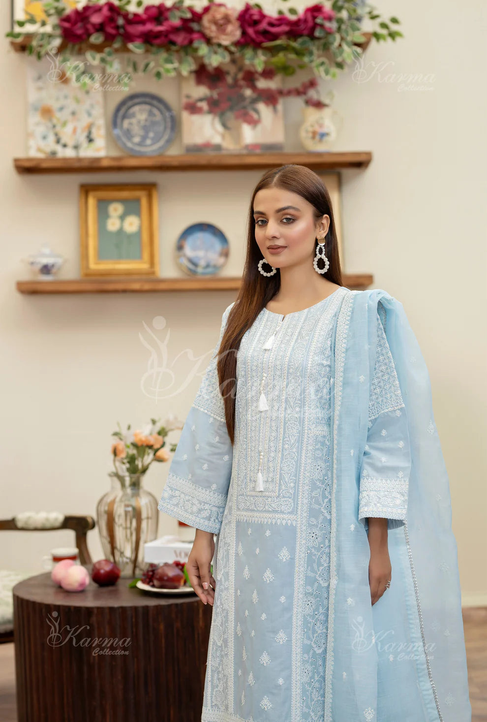 Embroidered Long Chikankari Shirt with Mate Thread and Panni Work