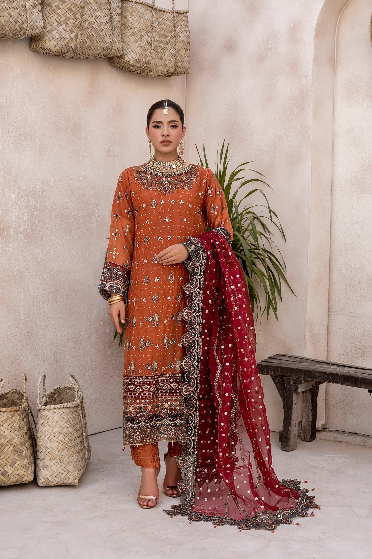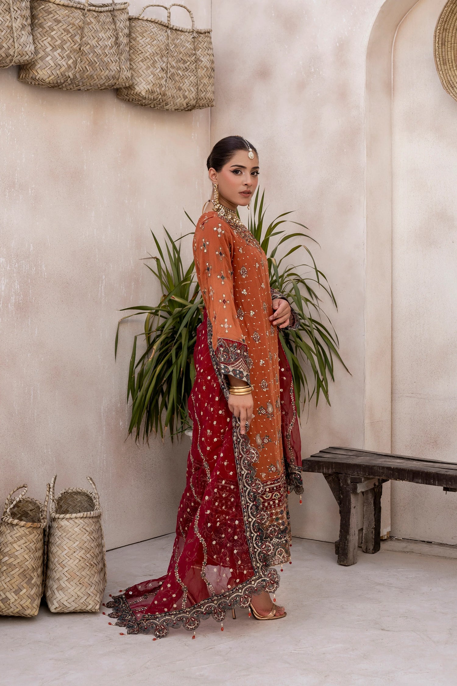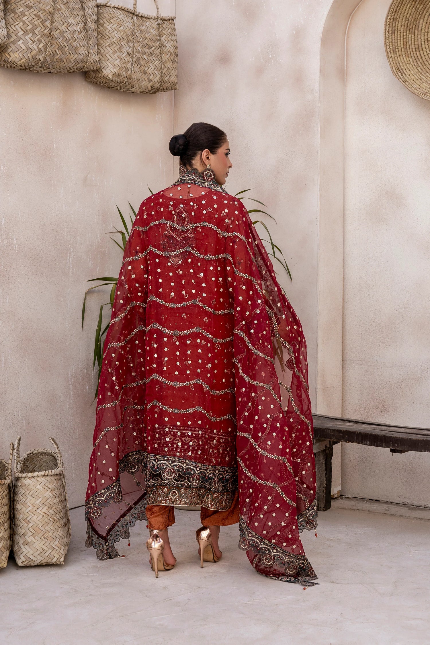 - It includes an organza four-border dupatta with detailed embroidered cutwork, ready to wear.