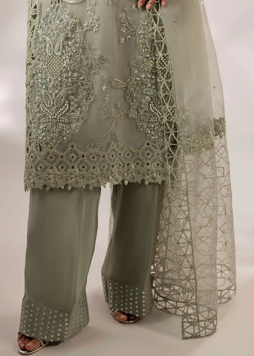 Medium length shirt with straight trouser, paired with organza dupatta; this outfit competes the look with embroidery and light embellishment.