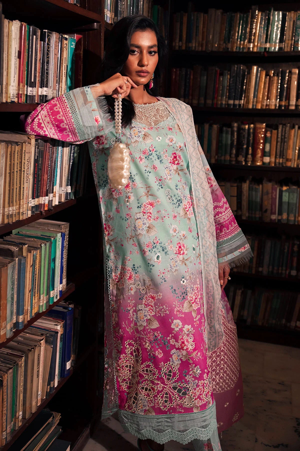 - Printed And Embroidered Chikankari Lawn Shirt, Printed And Embroidered Chiffon Dupatta And Printed Cotton Trouser