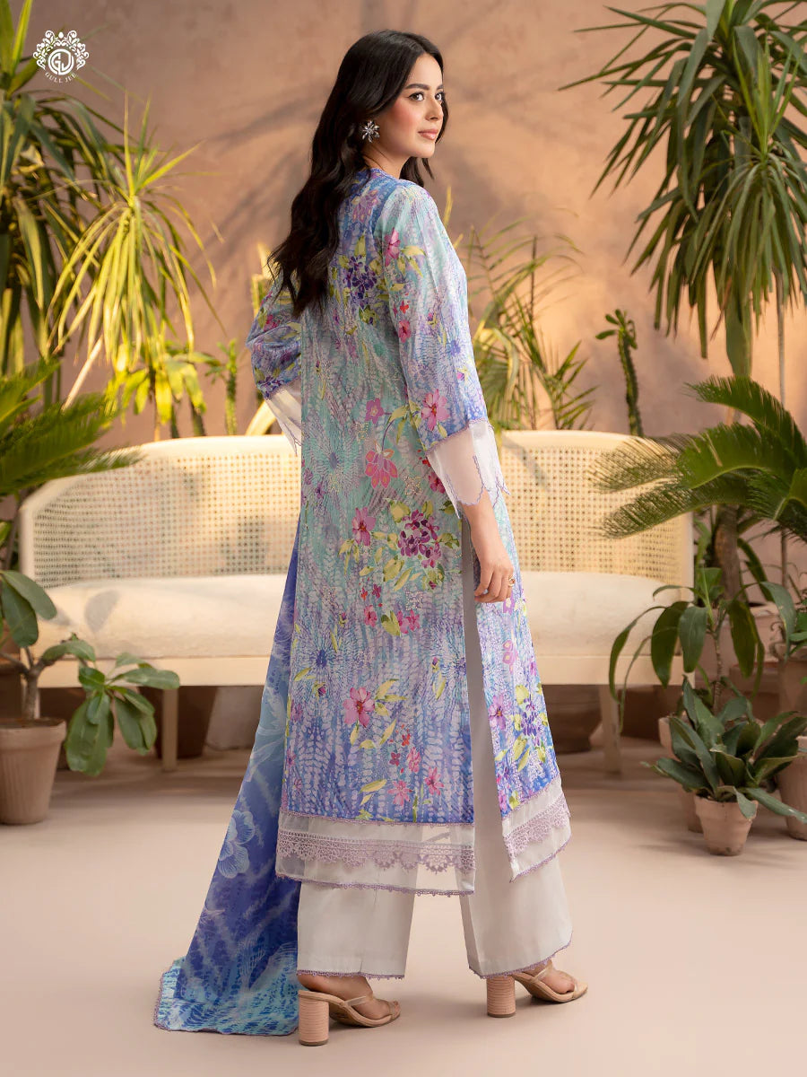 Front: Digital Printed Lawn Boring Embroidered