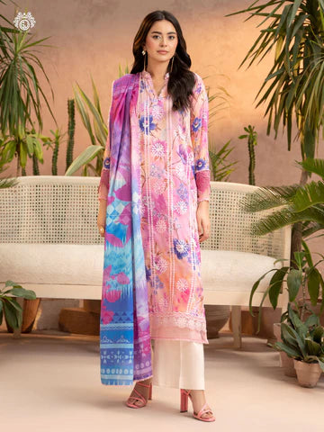 Front: Digital Printed Lawn Boring Embroidered