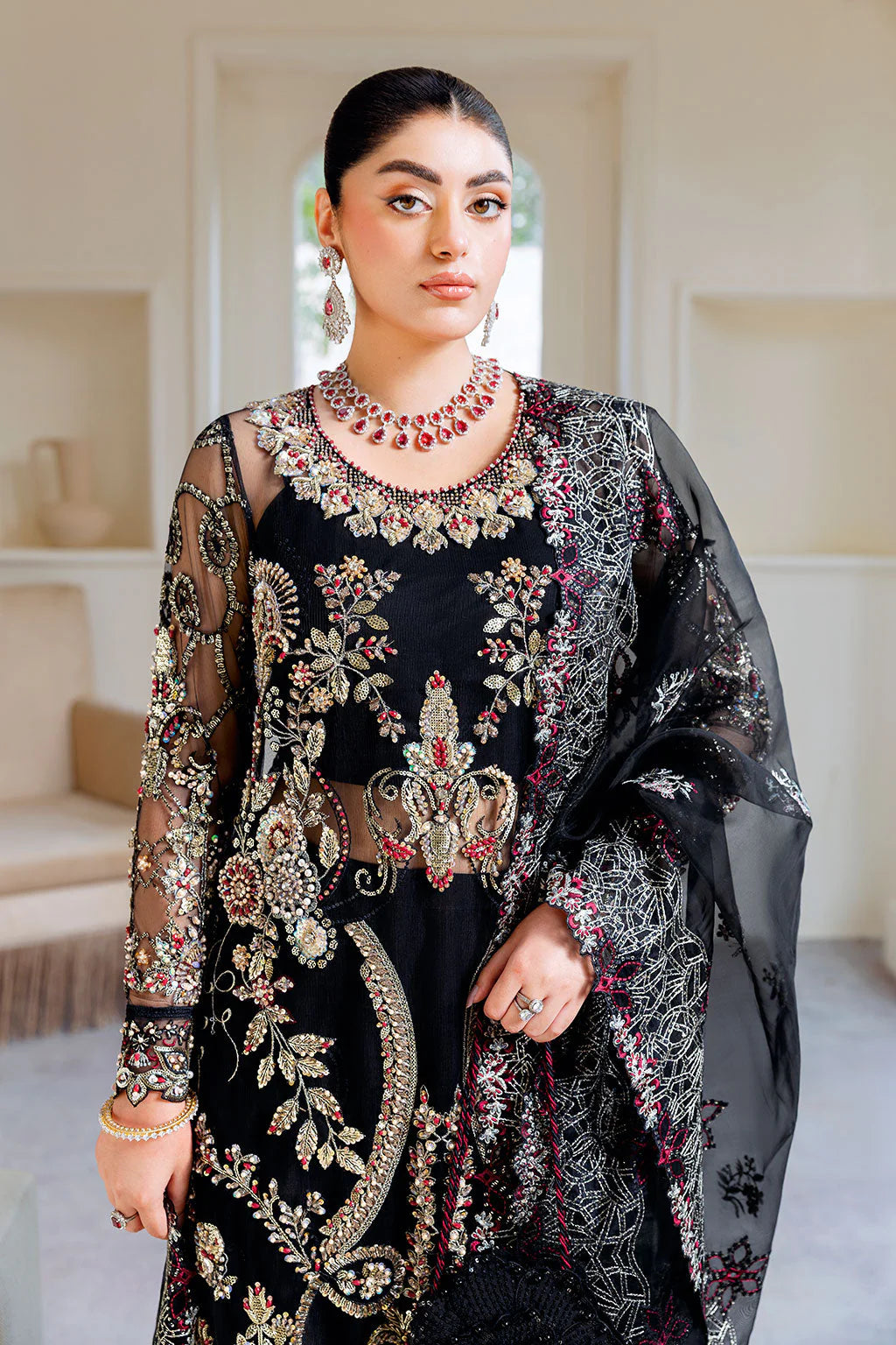 Embroidered Organza Dupatta with Sequins