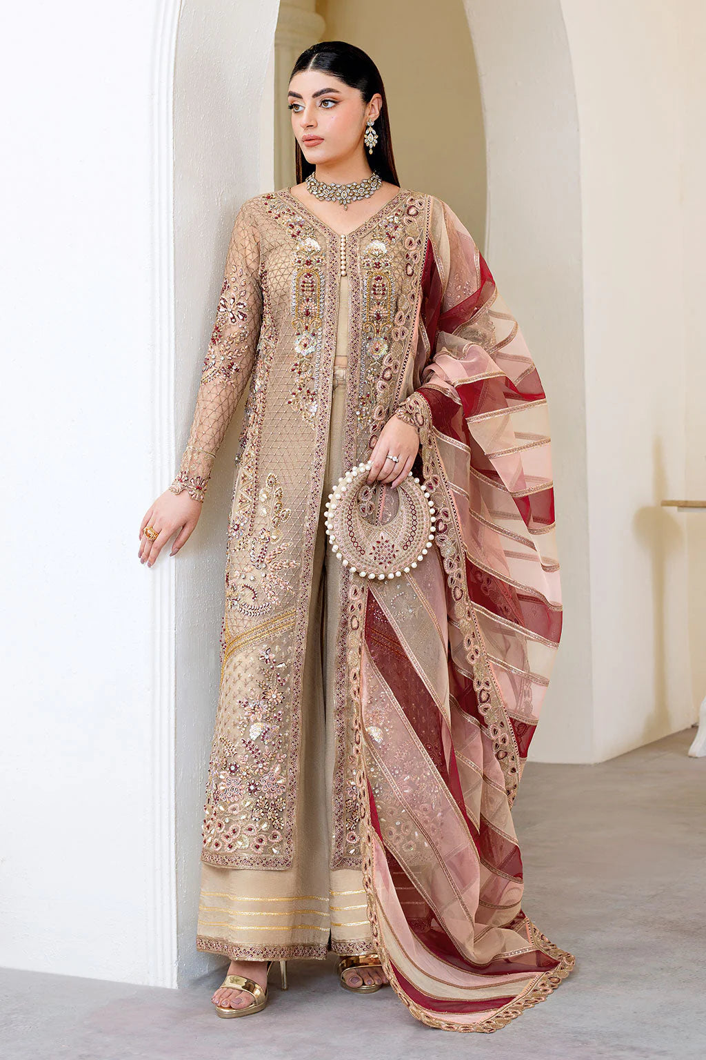 Embroidered Handmade Organza Front Gown