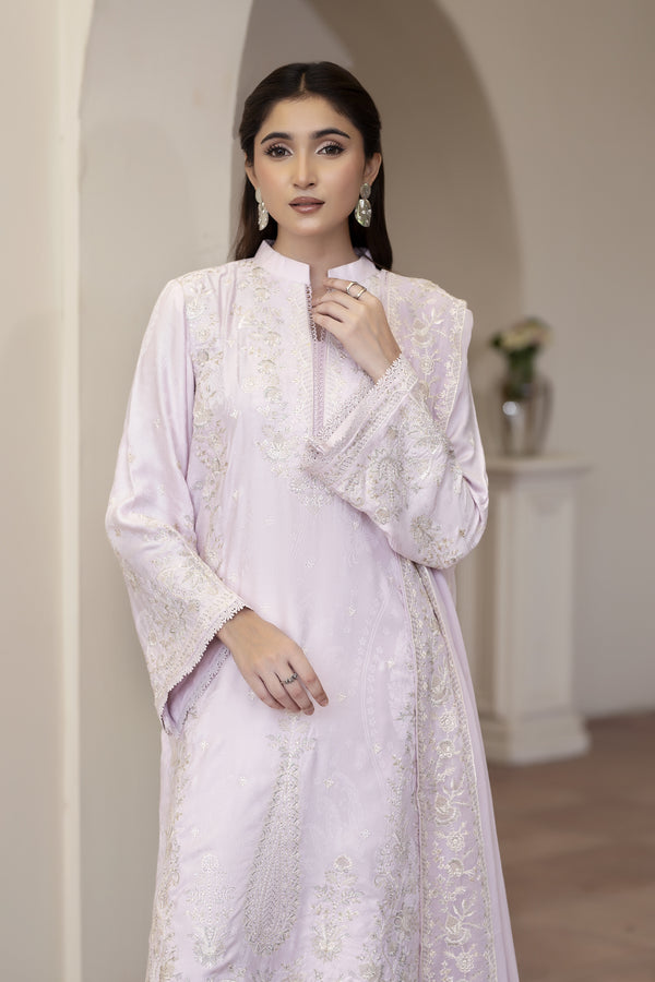Description: Embroidered Viscose Stapple Jacquard With Embroidered Chiffon Dupatta