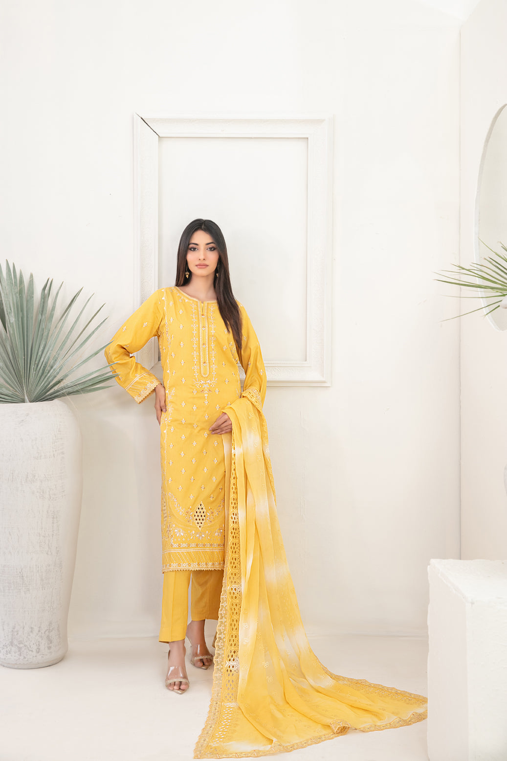 - Stitched Fancy Embroidered Staple Shirt Designs with embellishments with