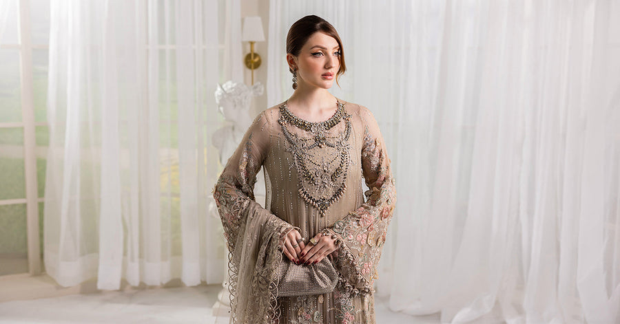 Embroidered Organza Neck With 3D Hand Embellishment & Diamantes