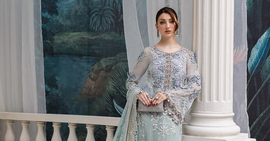 Embroidered Chiffon Sleeves With 3D Flowers & Hand Embellishment