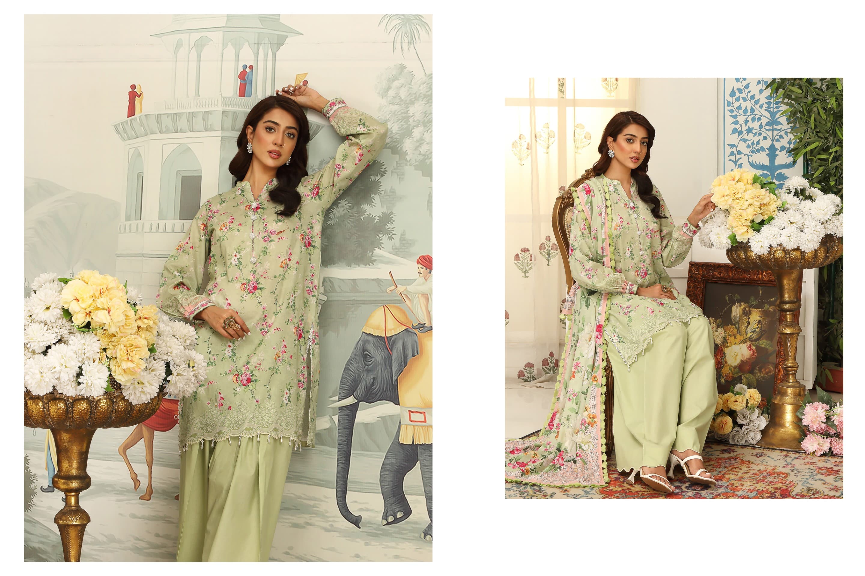DIGITAL PRINTED LAWN WITH LACES WORK/
