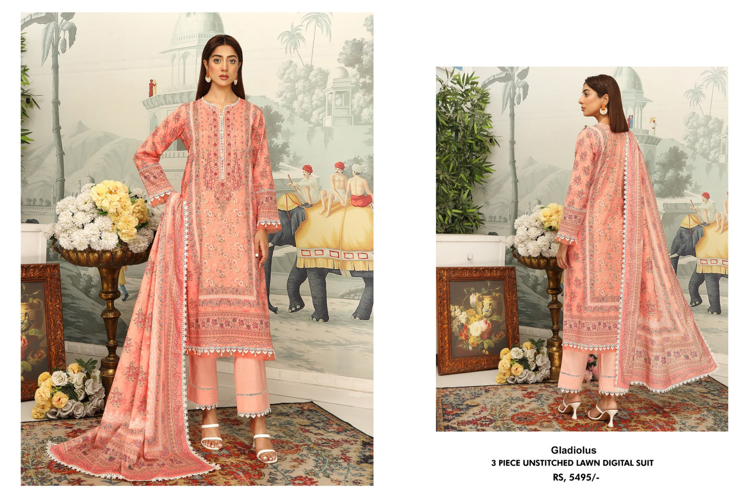 DIGITAL PRINTED LAWN WITH LACES WORK/