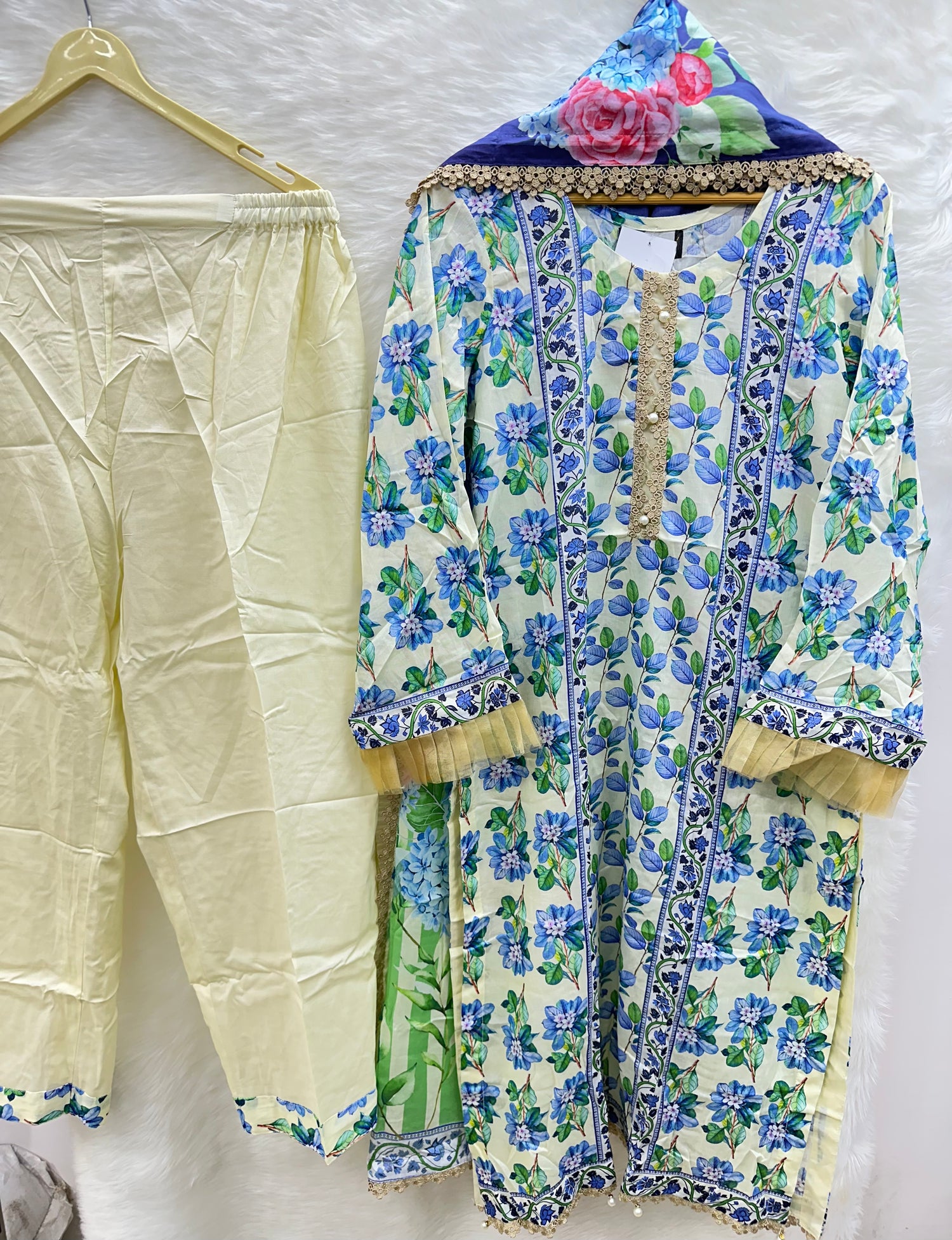 DIGITAL PRINTED LAWN DUPATTA WITH LACEWORK