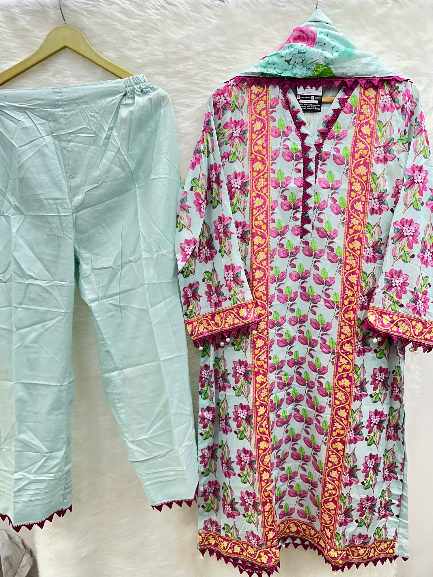 DIGITAL PRINTED LAWN DUPATTA WITH LACEWORK