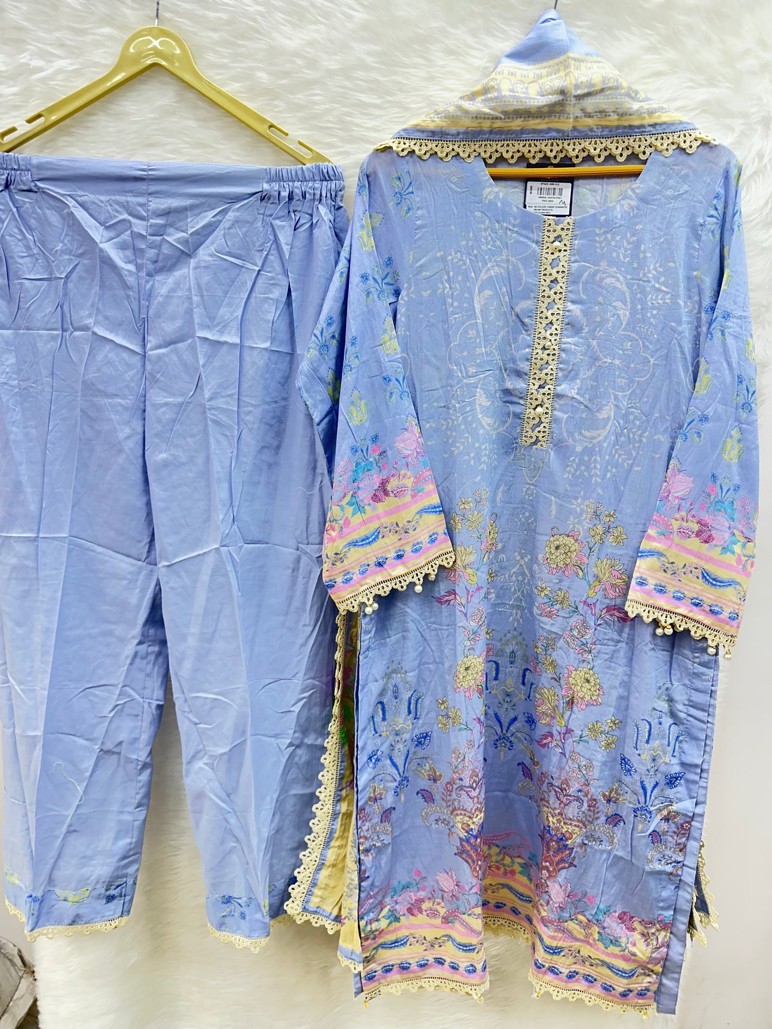 DIGITAL PRINTED LAWN DUPATTA WITH LACEWORK