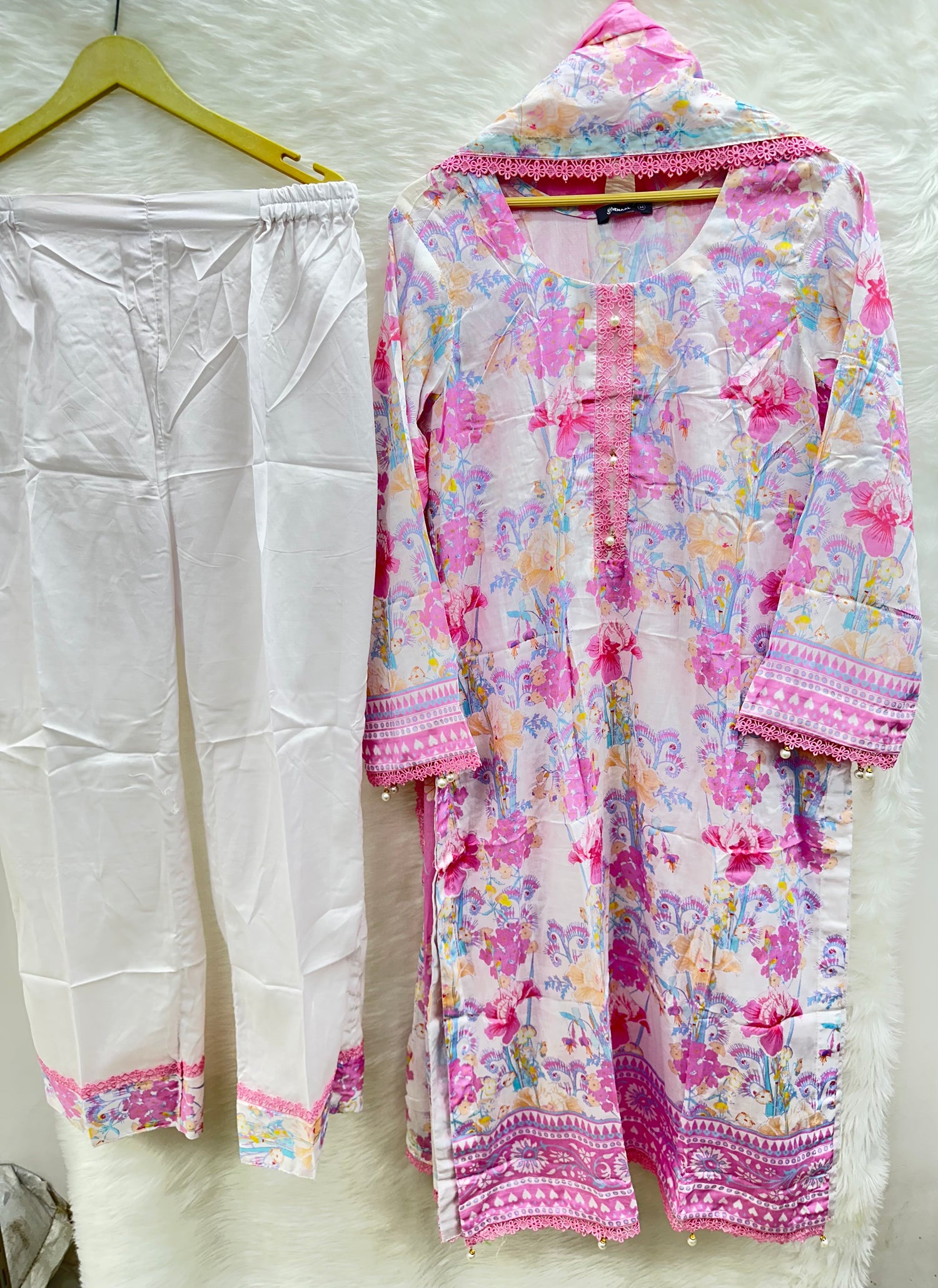 DIGITAL PRINTED LAWN DUPATTA WITH LACEWORK
