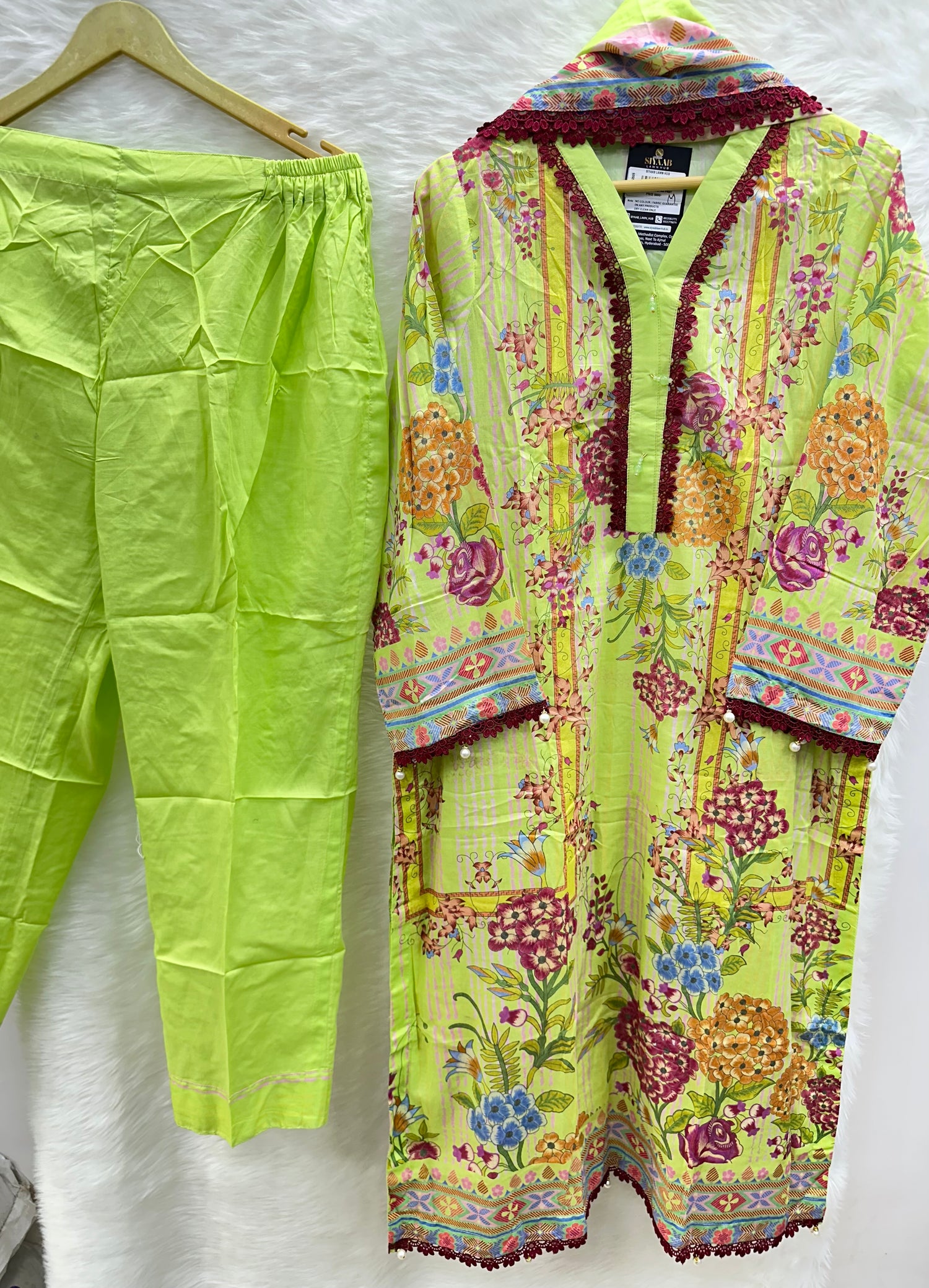 DIGITAL PRINTED LAWN DUPATTA WITH LACEWORK
