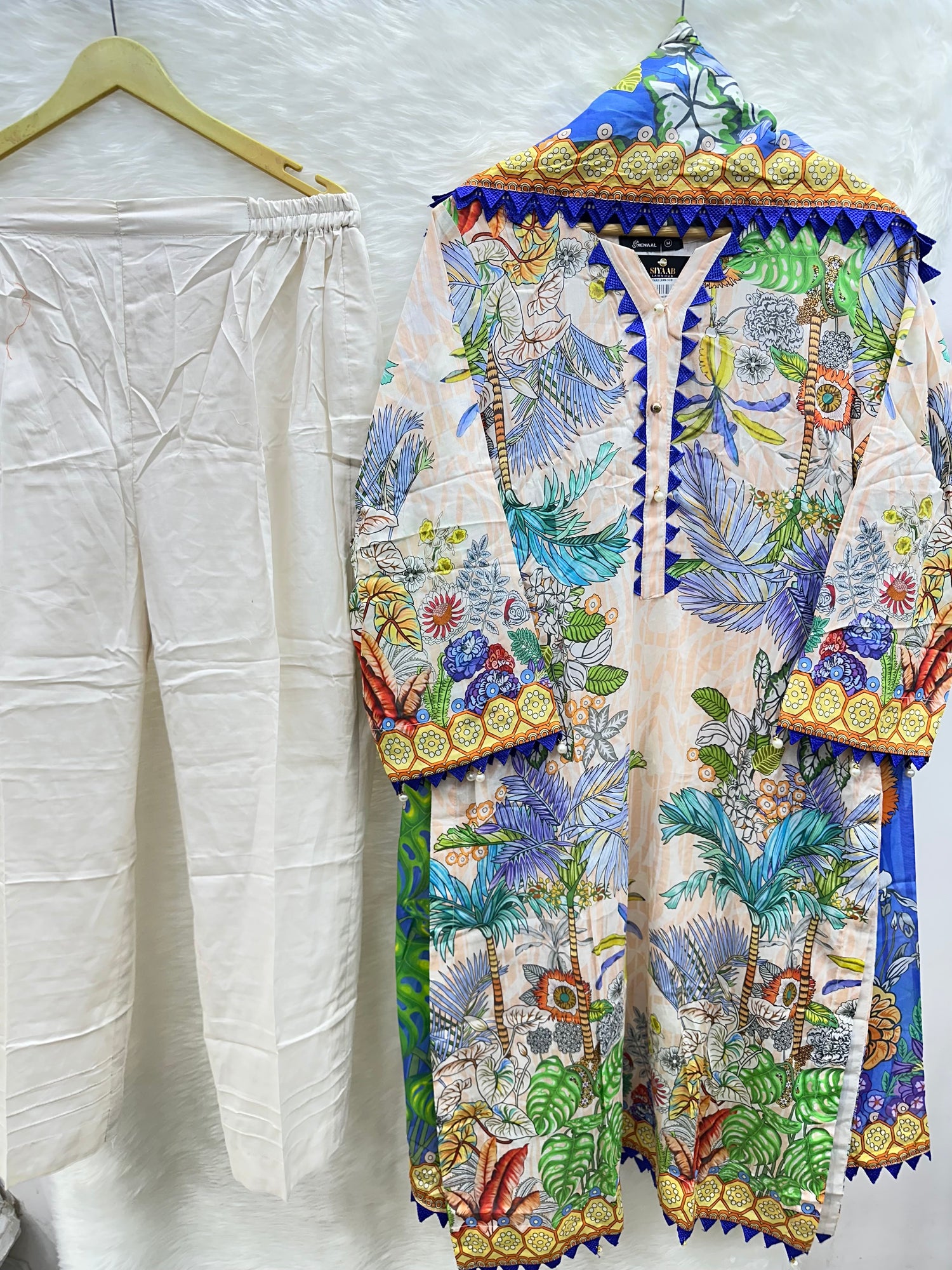 DIGITAL PRINTED LAWN DUPATTA WITH LACEWORK