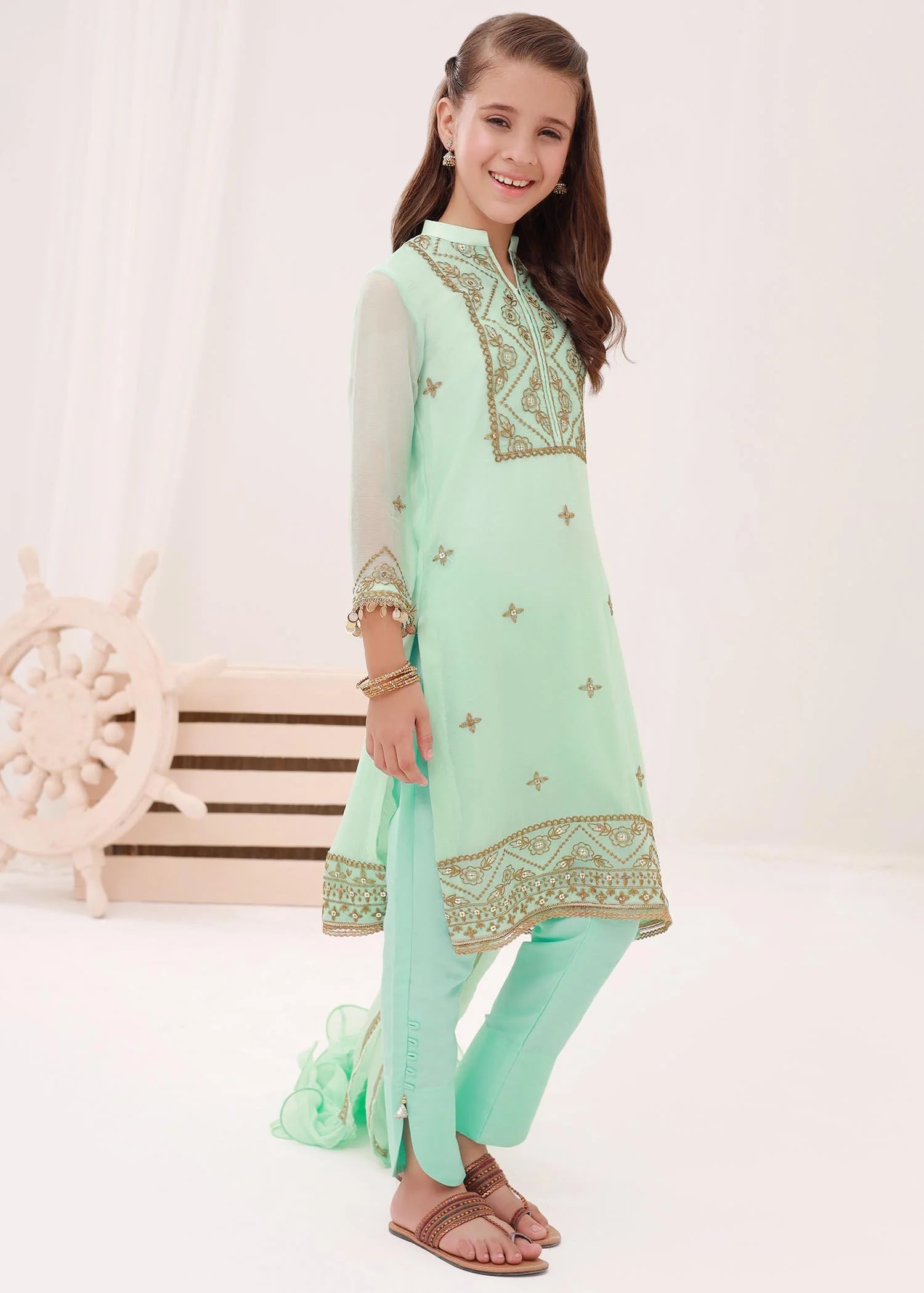Description: Kids chiffon Embroidered 3Pc Stitched Suit.