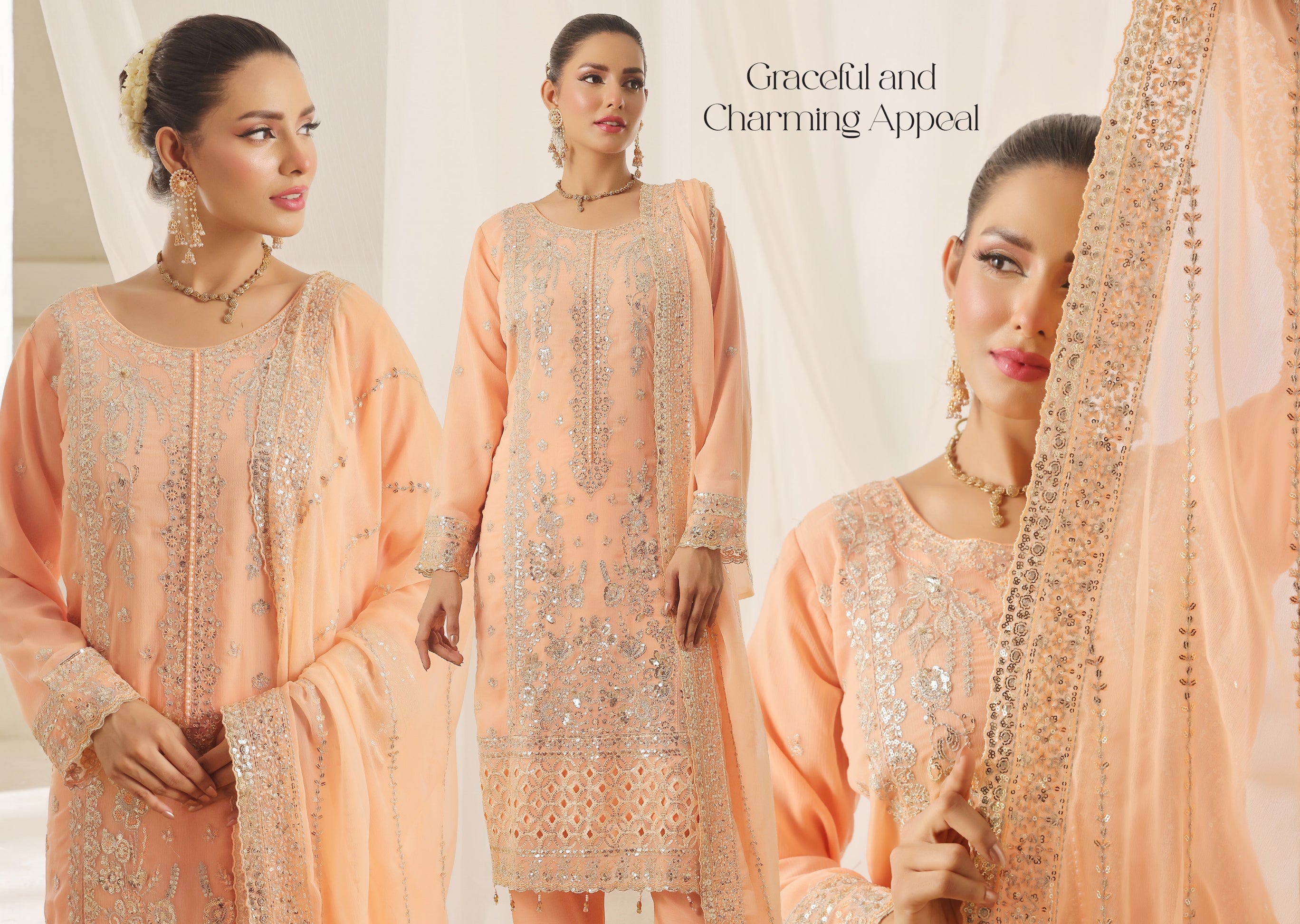 EMBROIDERED CHIFFON KAMEEZ/