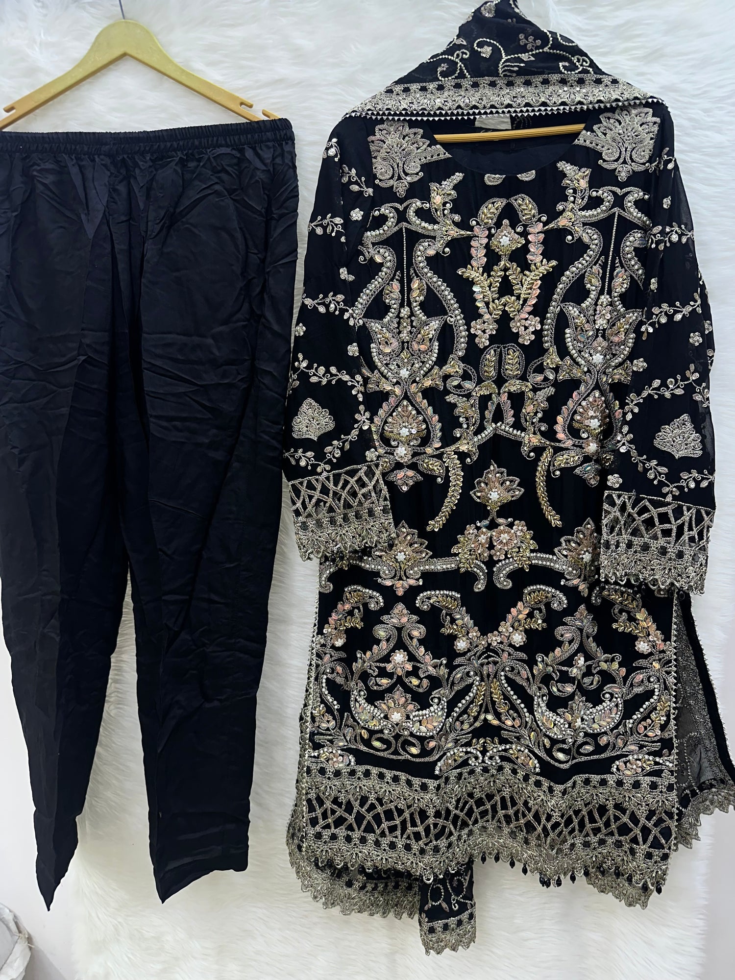 HEAVILY EMBROIDERED CHIFFON KAMEEZ
