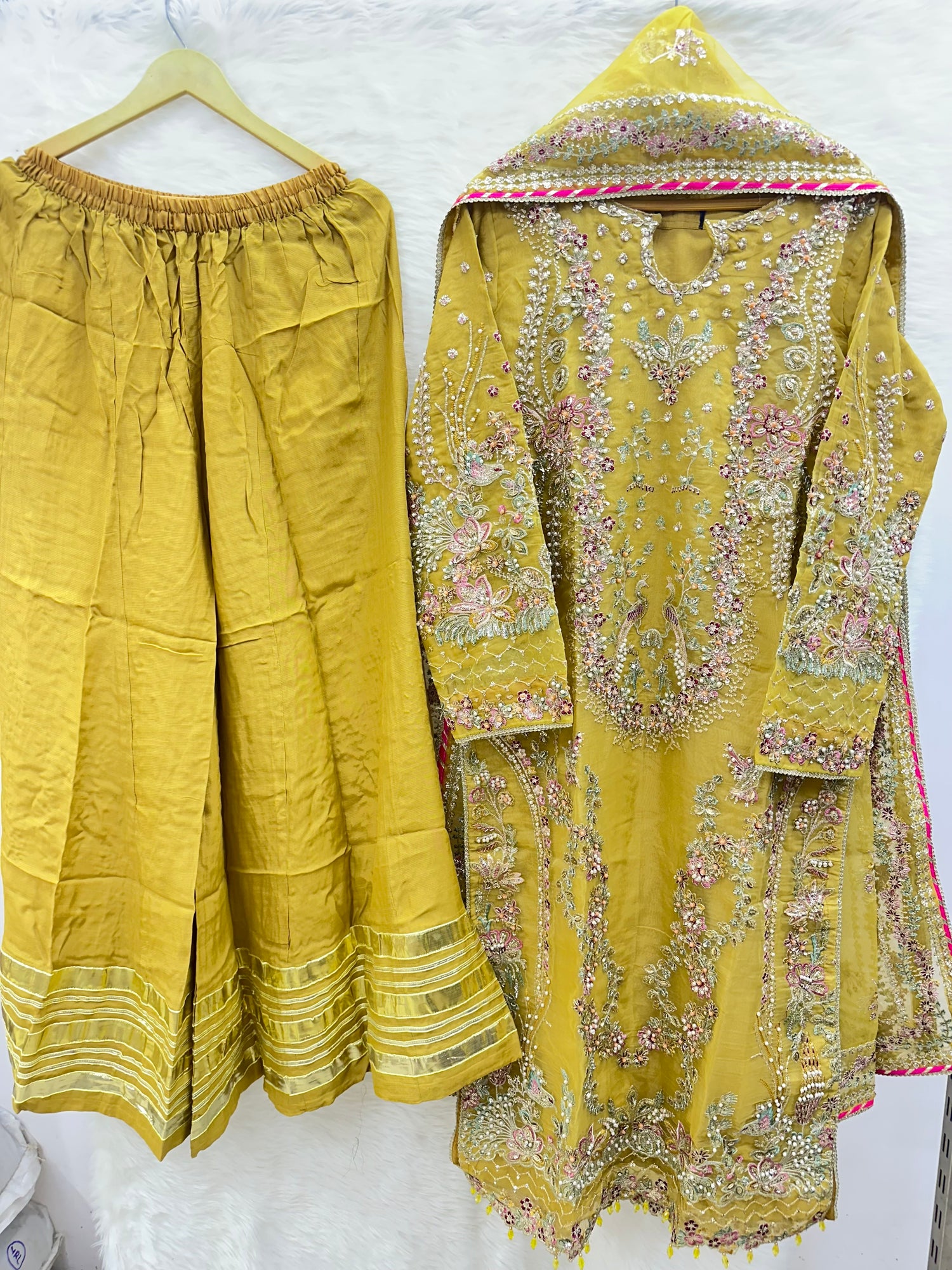 HEAVILY EMBROIDERED ORGANZA KAMEEZ