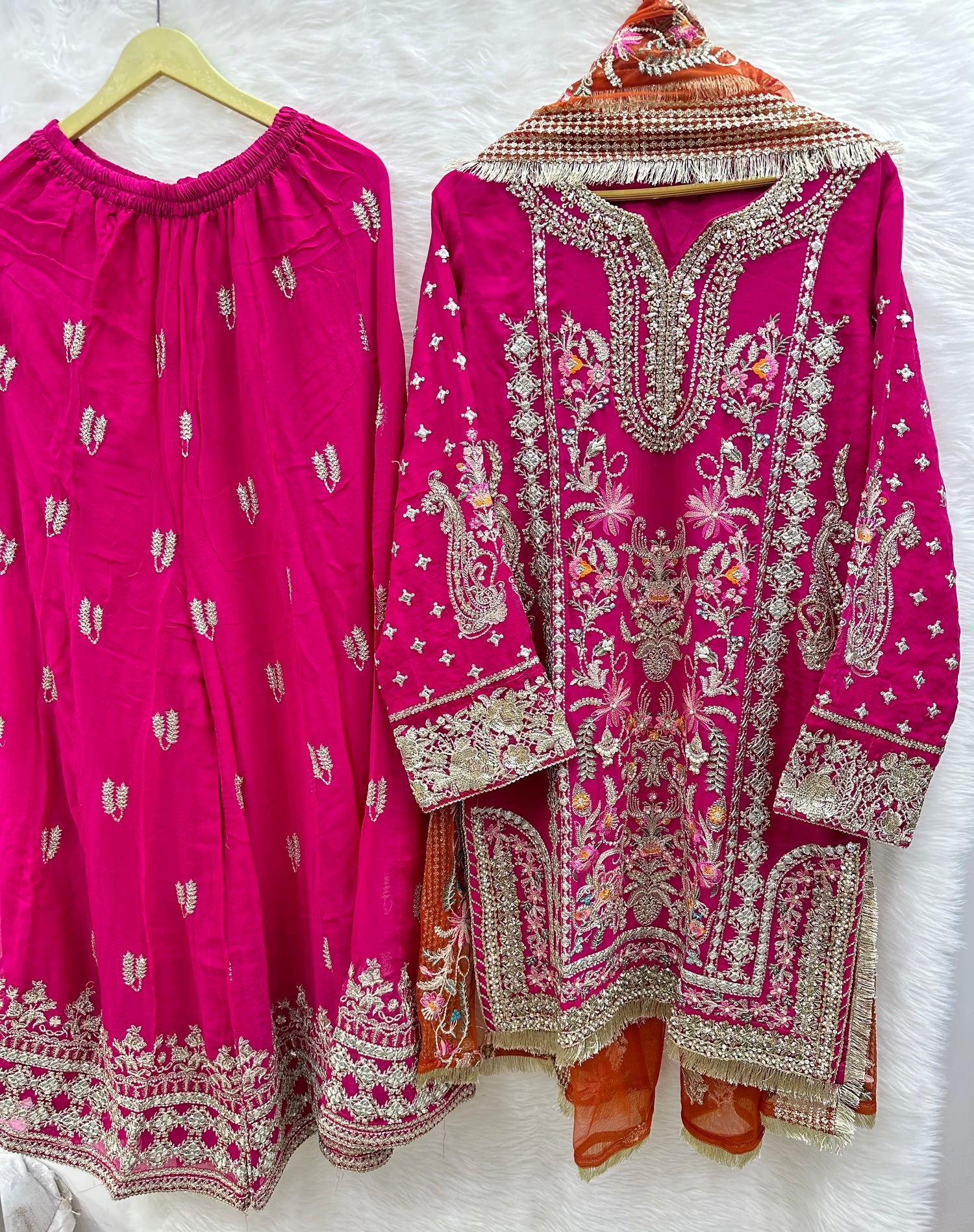 HEAVILY EMBROIDERED CHIFFON KAMEEZ