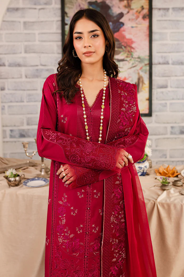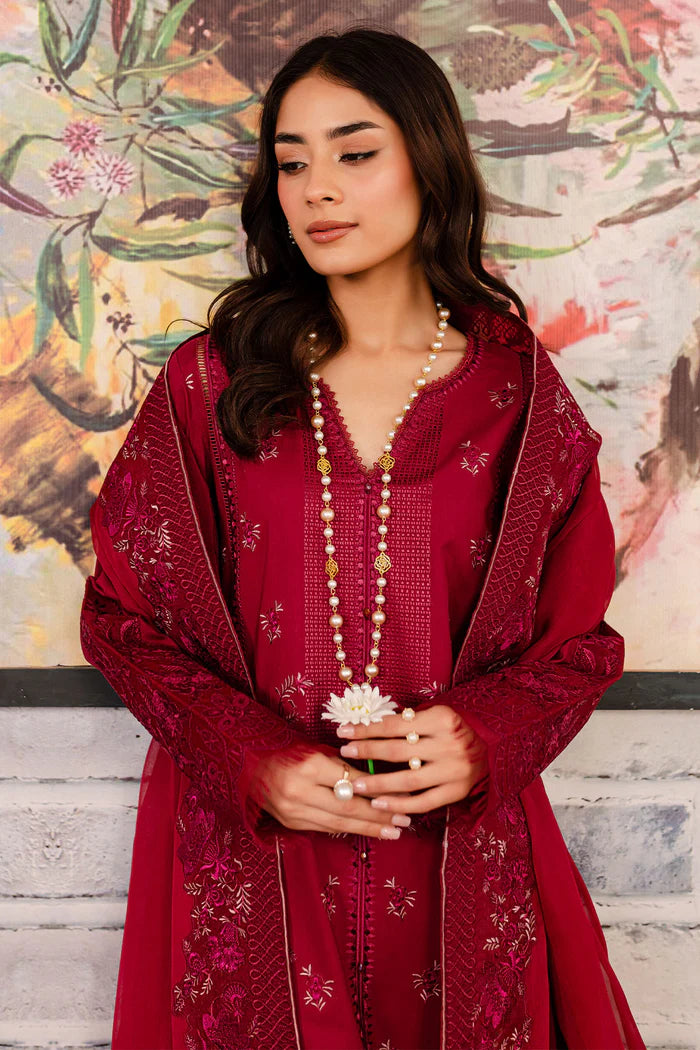 Embroidered Lawn Shirt Paired With Embroidered Chiffon Duppatta And Dyed Cotton Trouser