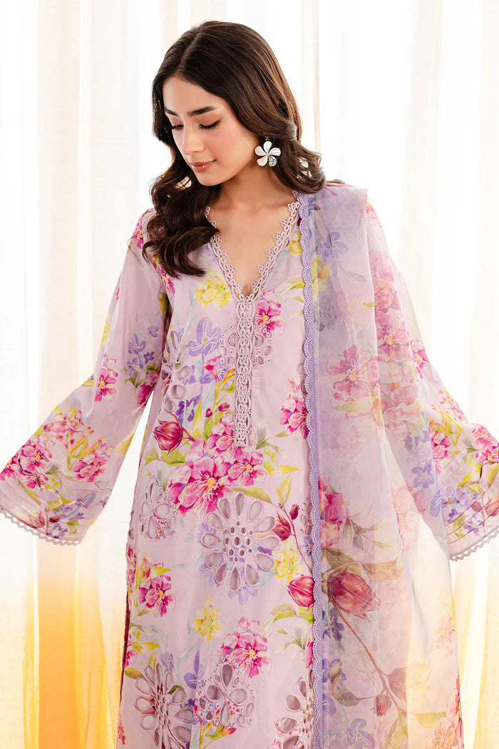 Printed And Embroidered Lawn Shirt Paired With Printed Organza Duppatta And Printed Cotton Trouser