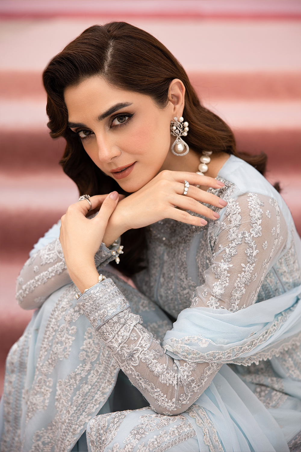 Sequins Embroidered Chiffon Sleeves: 0.65 yards