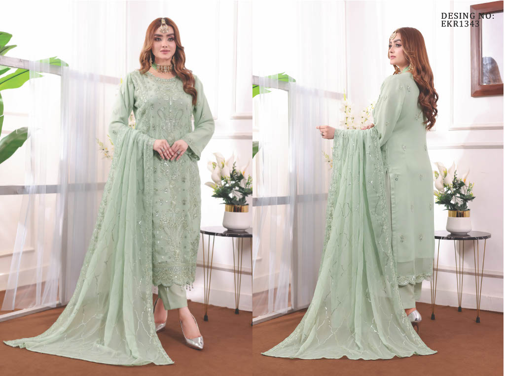 EMBROIDERED SEMI-STITCHED CHIFFON KAMEEZ/
