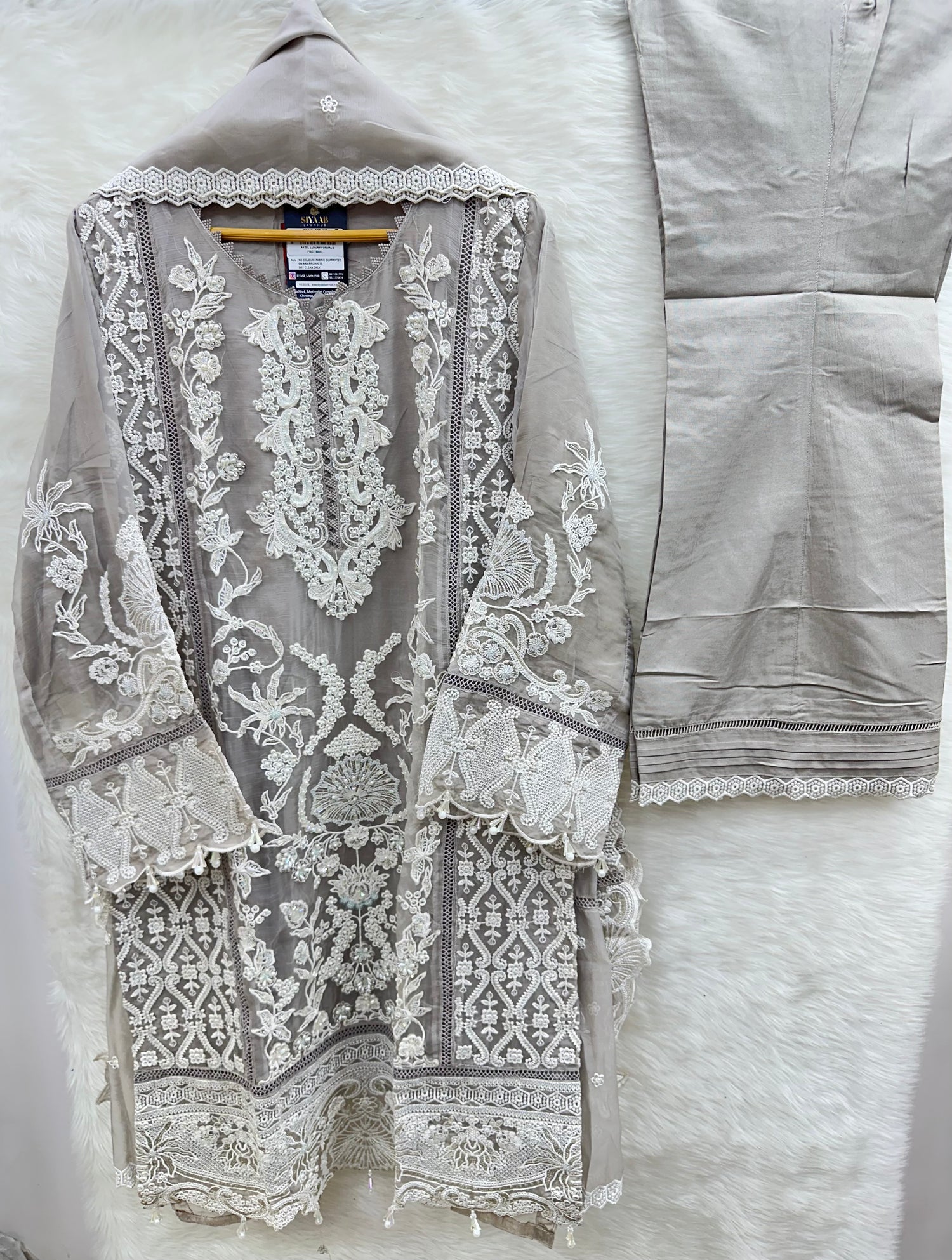 HEAVILY EMBROIDERED SOFT ORGANZA KAMEEZ