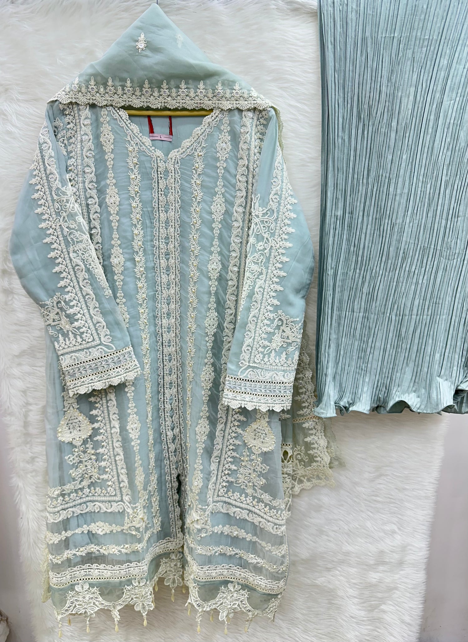 HEAVILY EMBROIDERED SOFT ORGANZA KAMEEZ