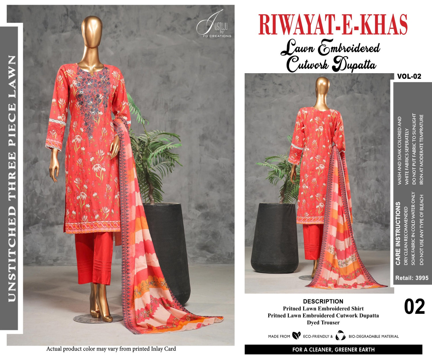 RIWAYAT -E-KHAS BY JUSTJU UN-STITCHED LAWN-DESING VL2-02