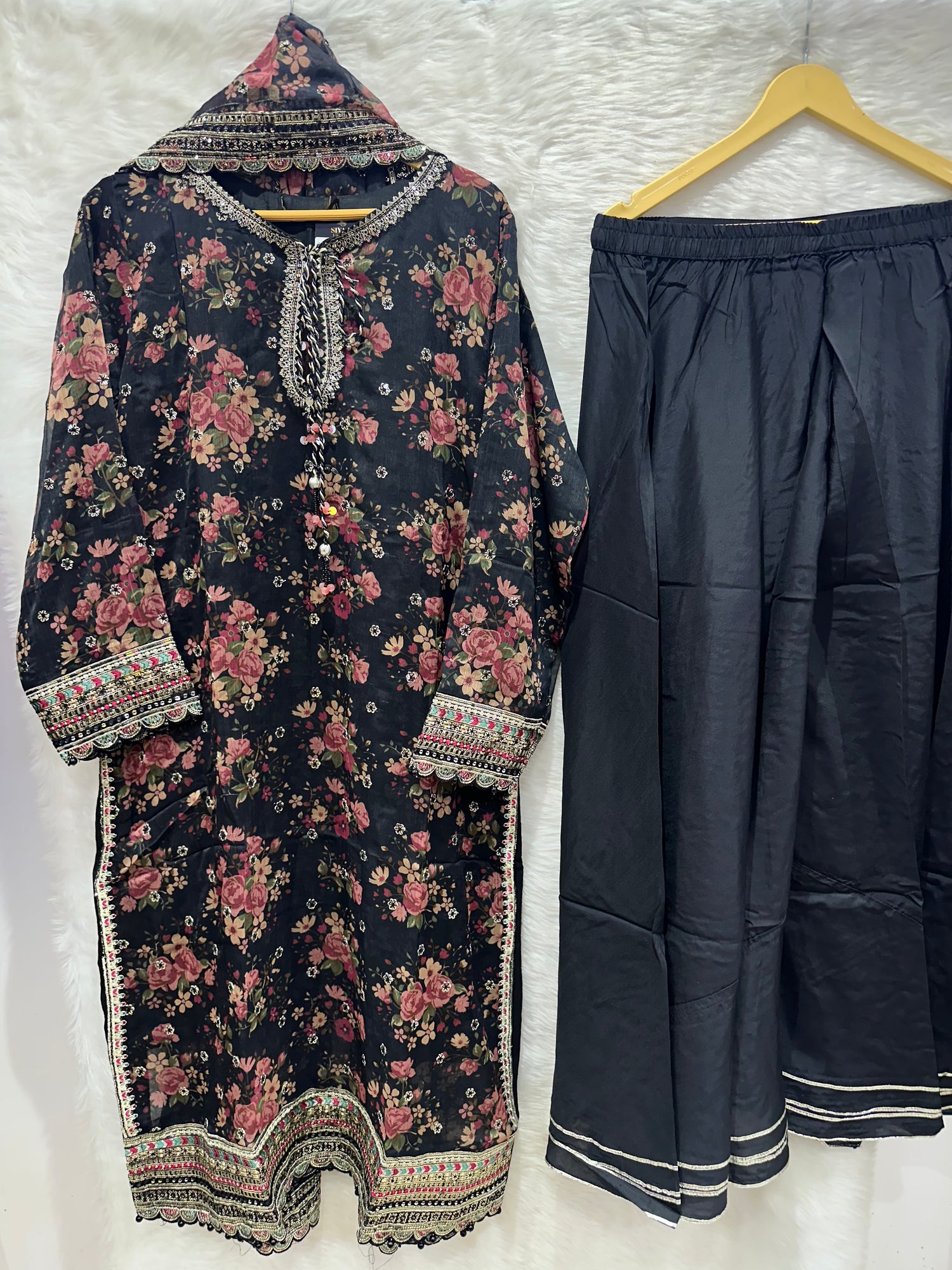 DIGITAL PRINTED EMBROIDERED CHIFFON KAMEEZ